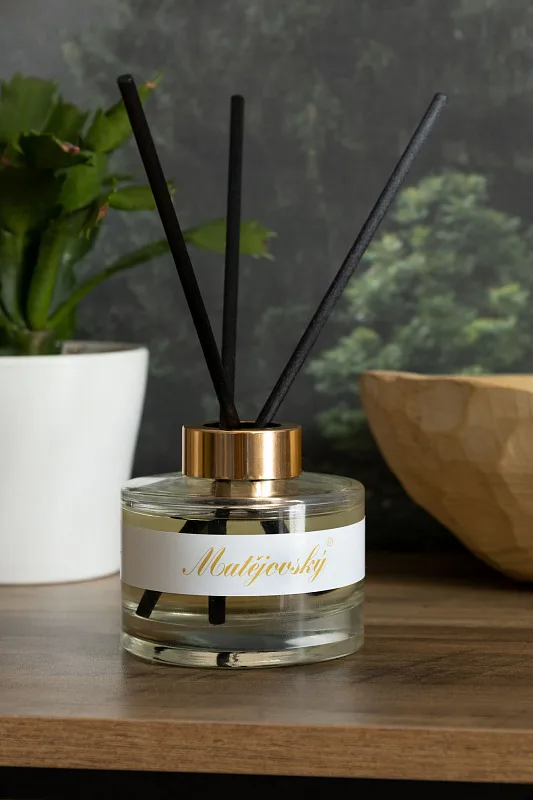 Opatrně sejměte víčko difuzéru a vložte ratanové tyčinky. Čím více tyčinek použijete, tím bude aroma intenzivnější. Tyčinky vložené do difuzéru doporučujeme po týdnu či 14 dnech obrátit, prodloužíte tak životnost výrobku.