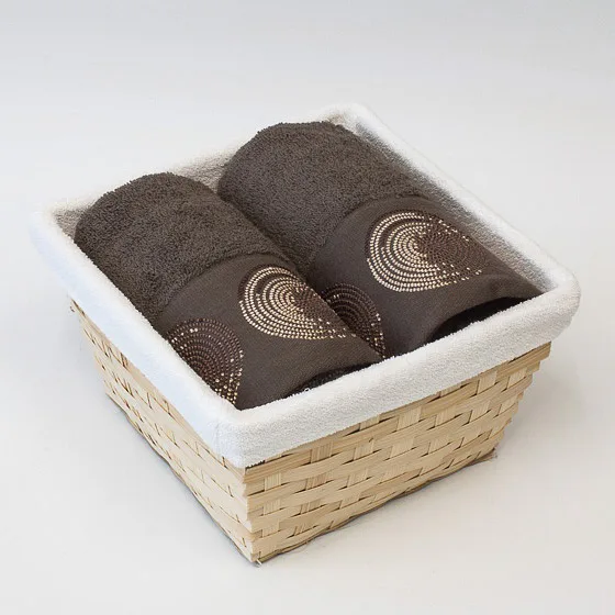 Košík s froté textilní vsadkou obsahuje 2 ks bavlněných ručníků o rozměrech 50x100 cm. Ručník je opatřen krásnou moderní výšivkou. Košík je součástí balení.