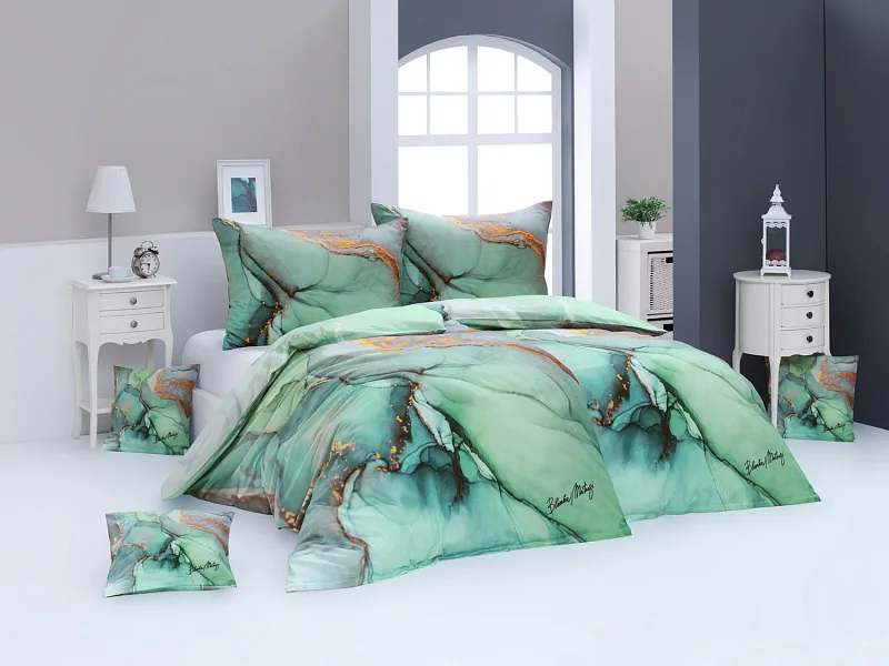 Luxurious cotton satin bedding is printed with digital printing, which provides details exactly according to the author's intention.Bedding is signed by Blanka Matragi - the signature is on the blanket, pillow or on a small pillow. The theme is the same as on the photo on both sides, all parts of the bedding have a comfortable zip closure.
