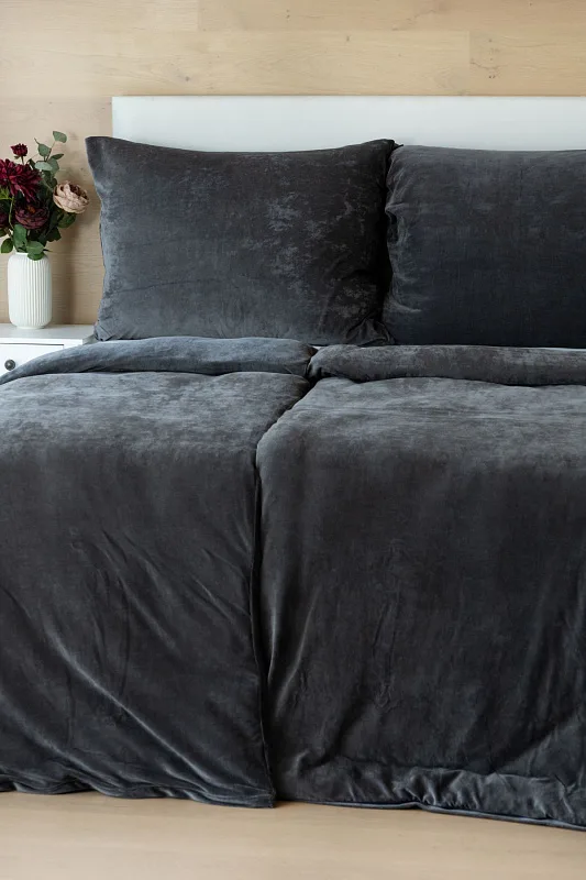 The cotton microplush of our production boasts a high proportion of cotton (80%), with the remaining 20% PE forming the bottom structure of the fitted fabric. Velour bedding should not be ironed. The velour bedding collection meets the criteria of the Oeko-Tex Standard 100 international certification.