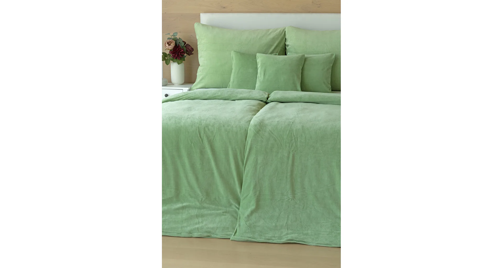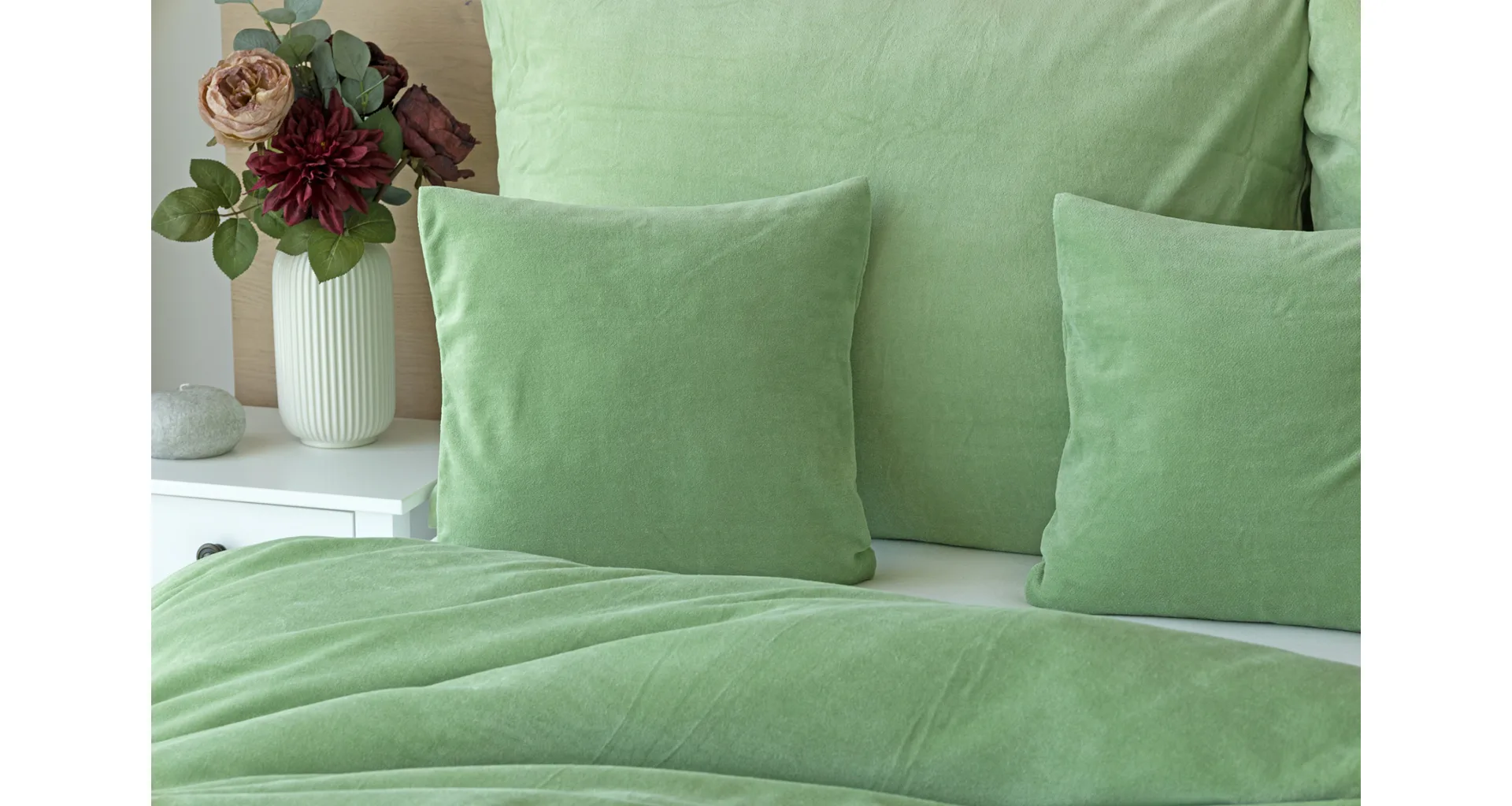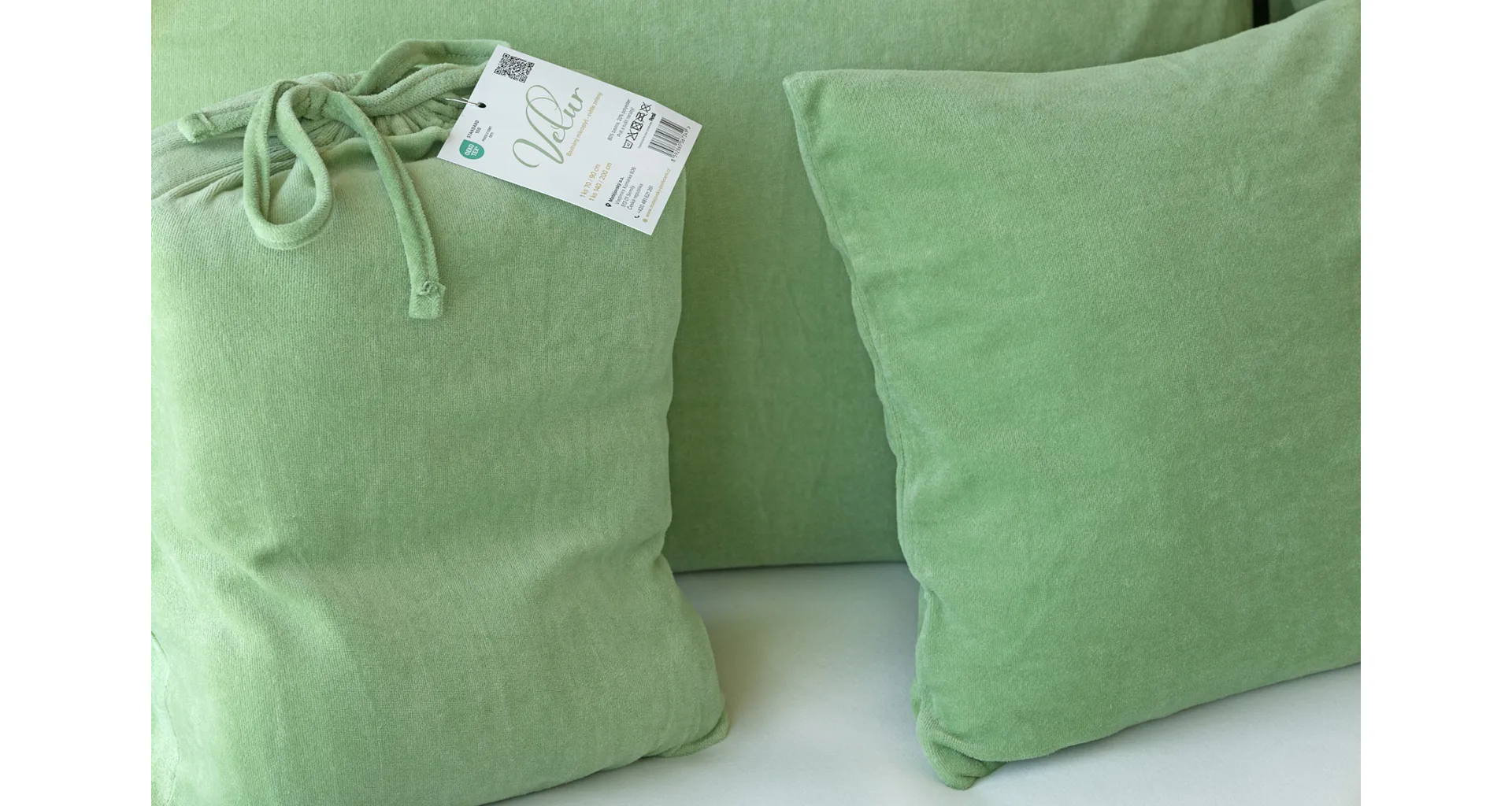 The cotton microplush of our production boasts a high proportion of cotton (80%), with the remaining 20% PE forming the bottom structure of the fitted fabric. Velour bedding should not be ironed. The velour bedding collection meets the criteria of the Oeko-Tex Standard 100 international certification.