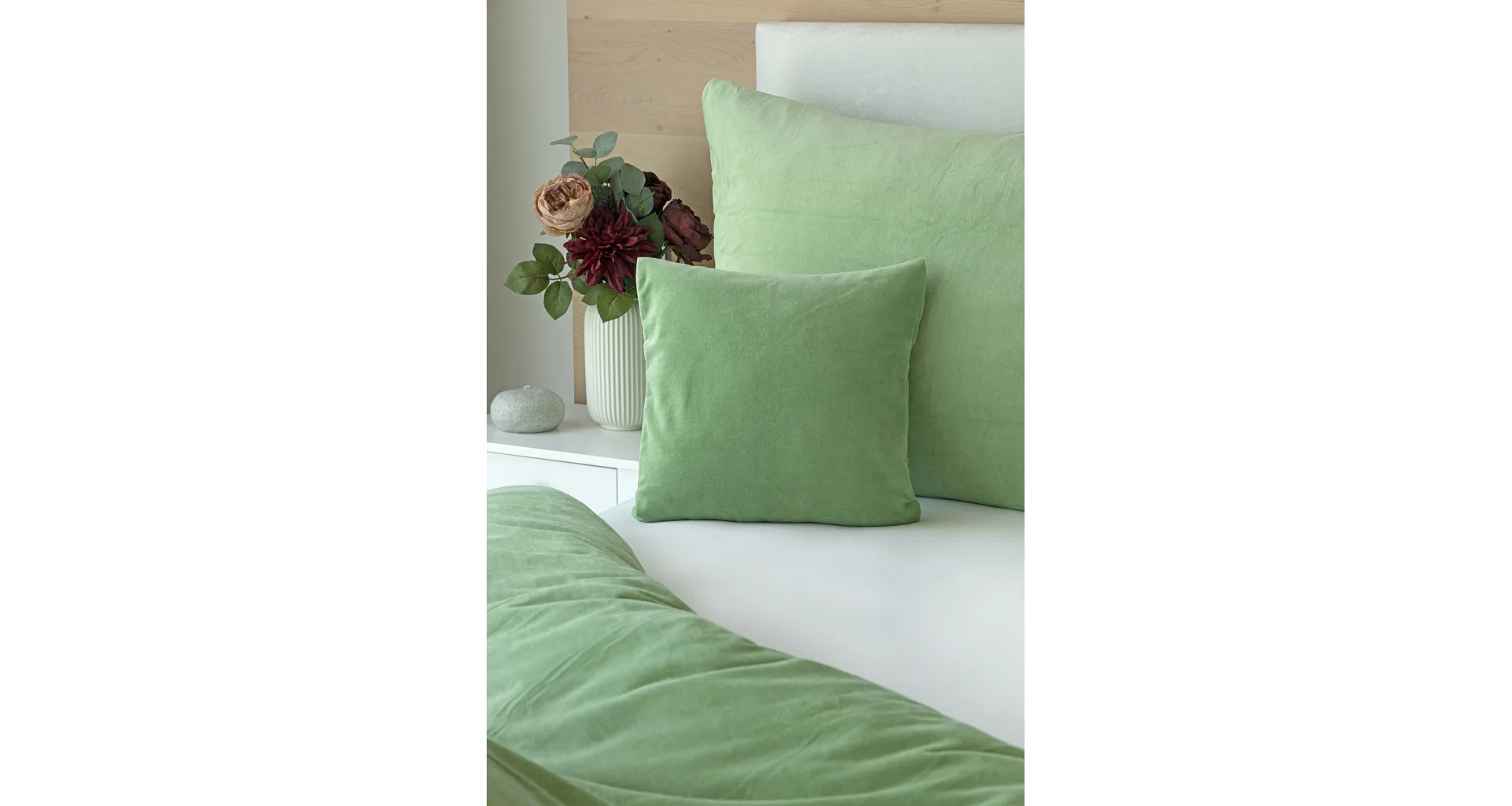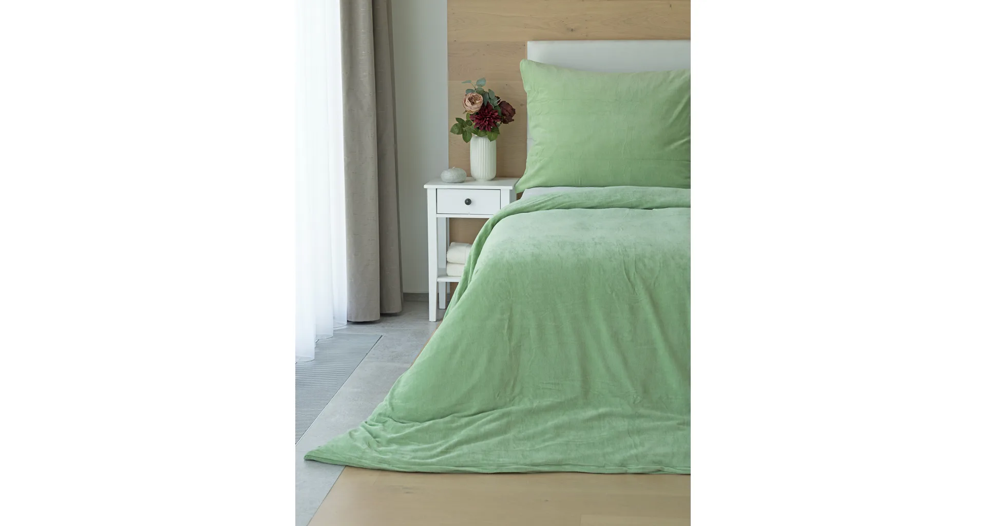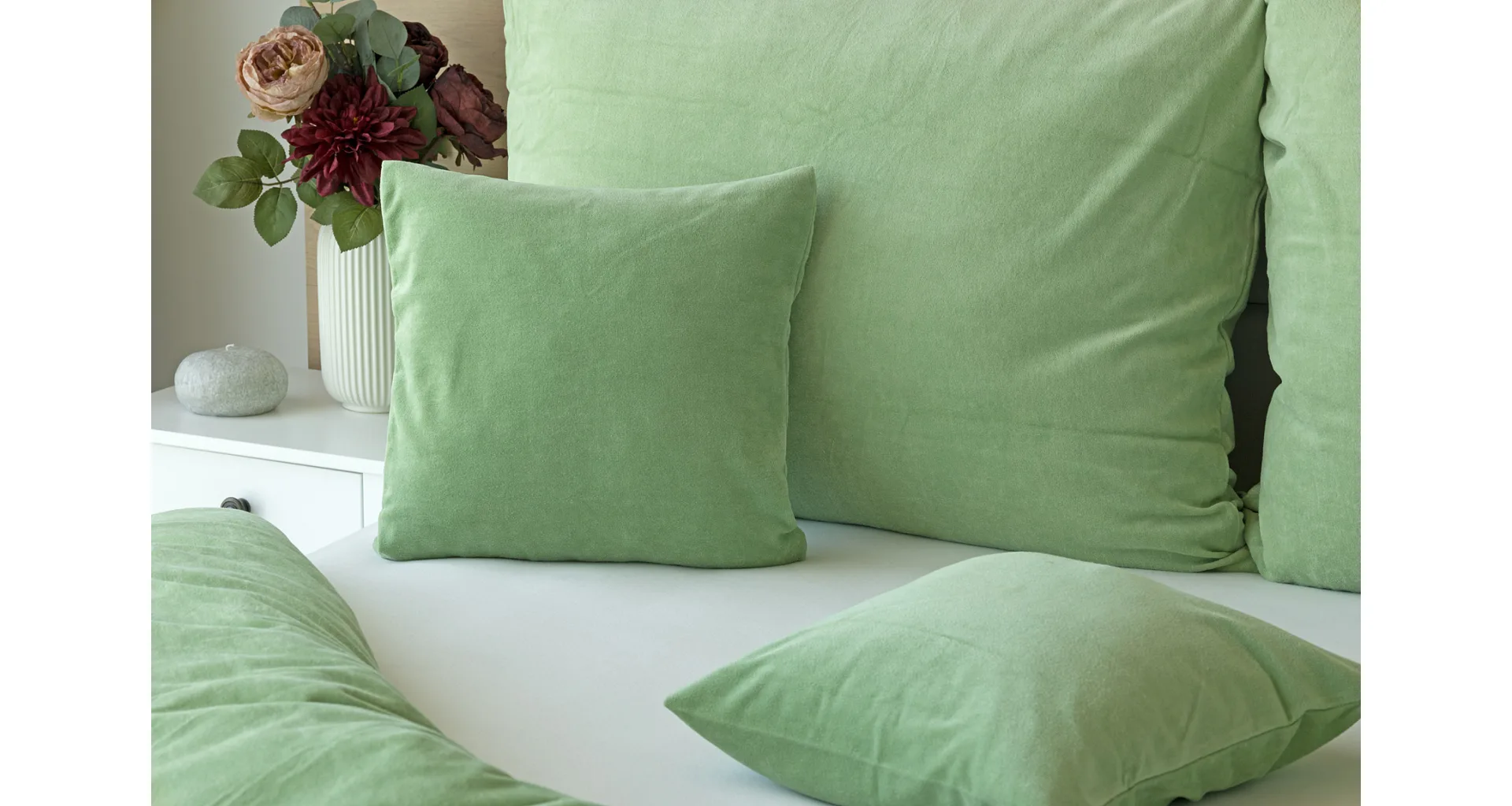 The cotton microplush of our production boasts a high proportion of cotton (80%), with the remaining 20% PE forming the bottom structure of the fitted fabric. Velour bedding should not be ironed. The velour bedding collection meets the criteria of the Oeko-Tex Standard 100 international certification.