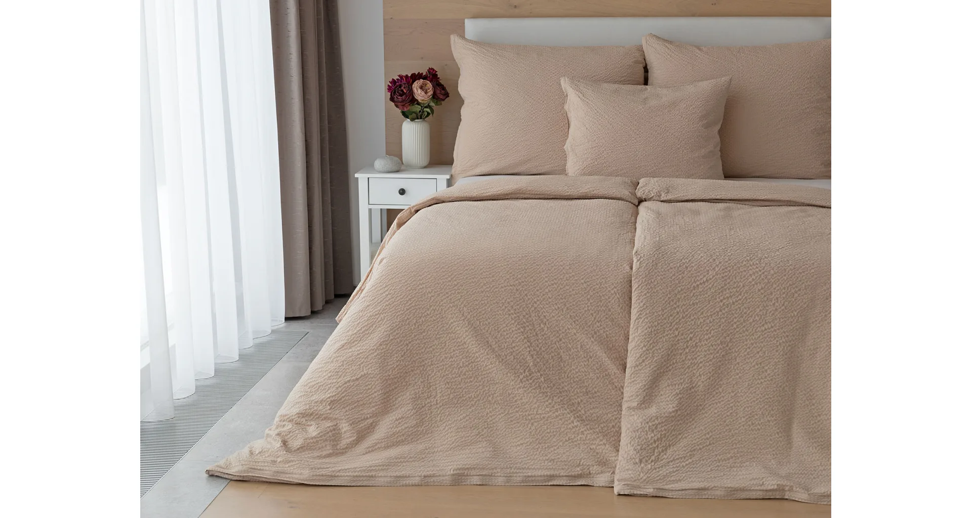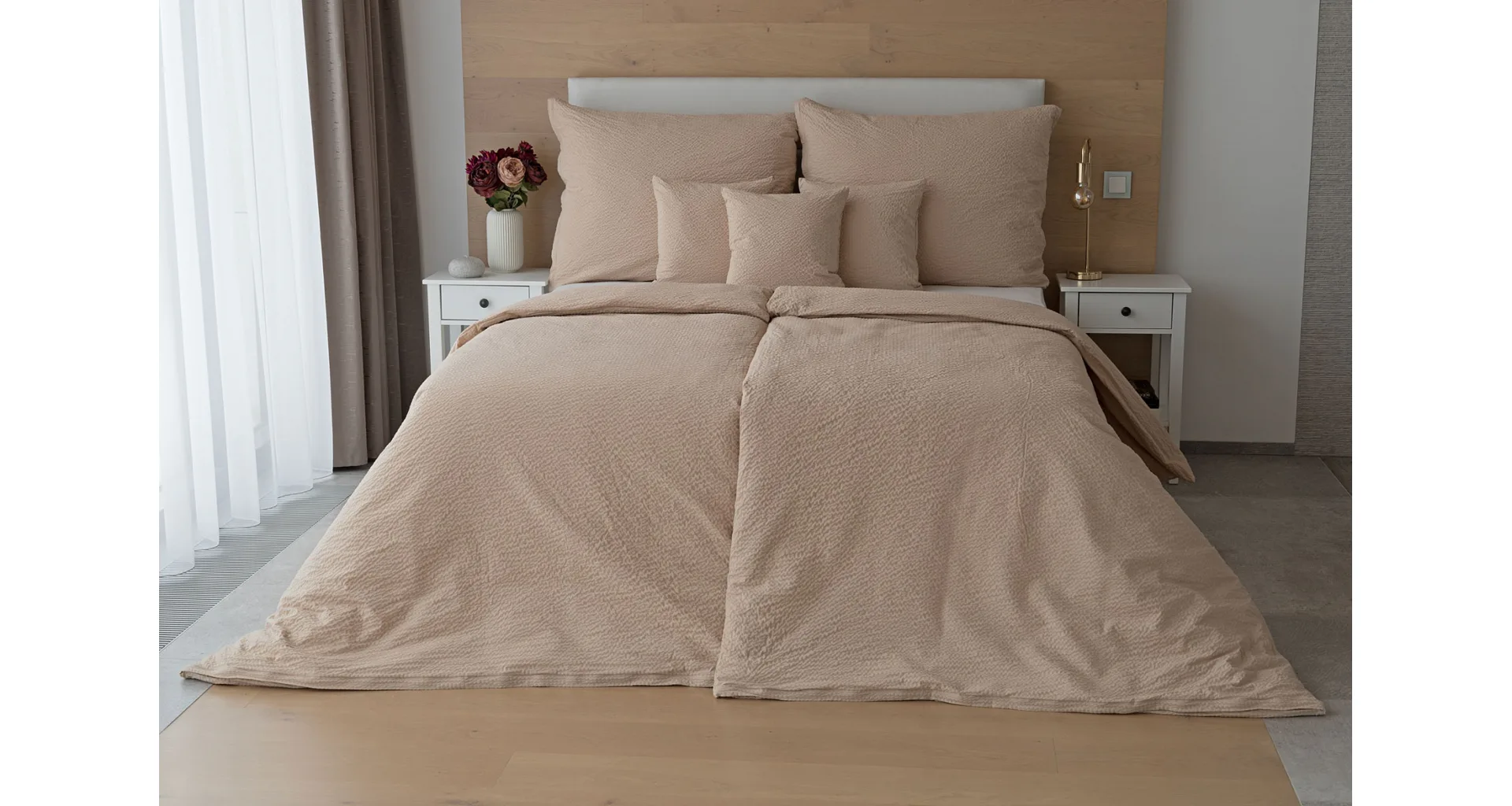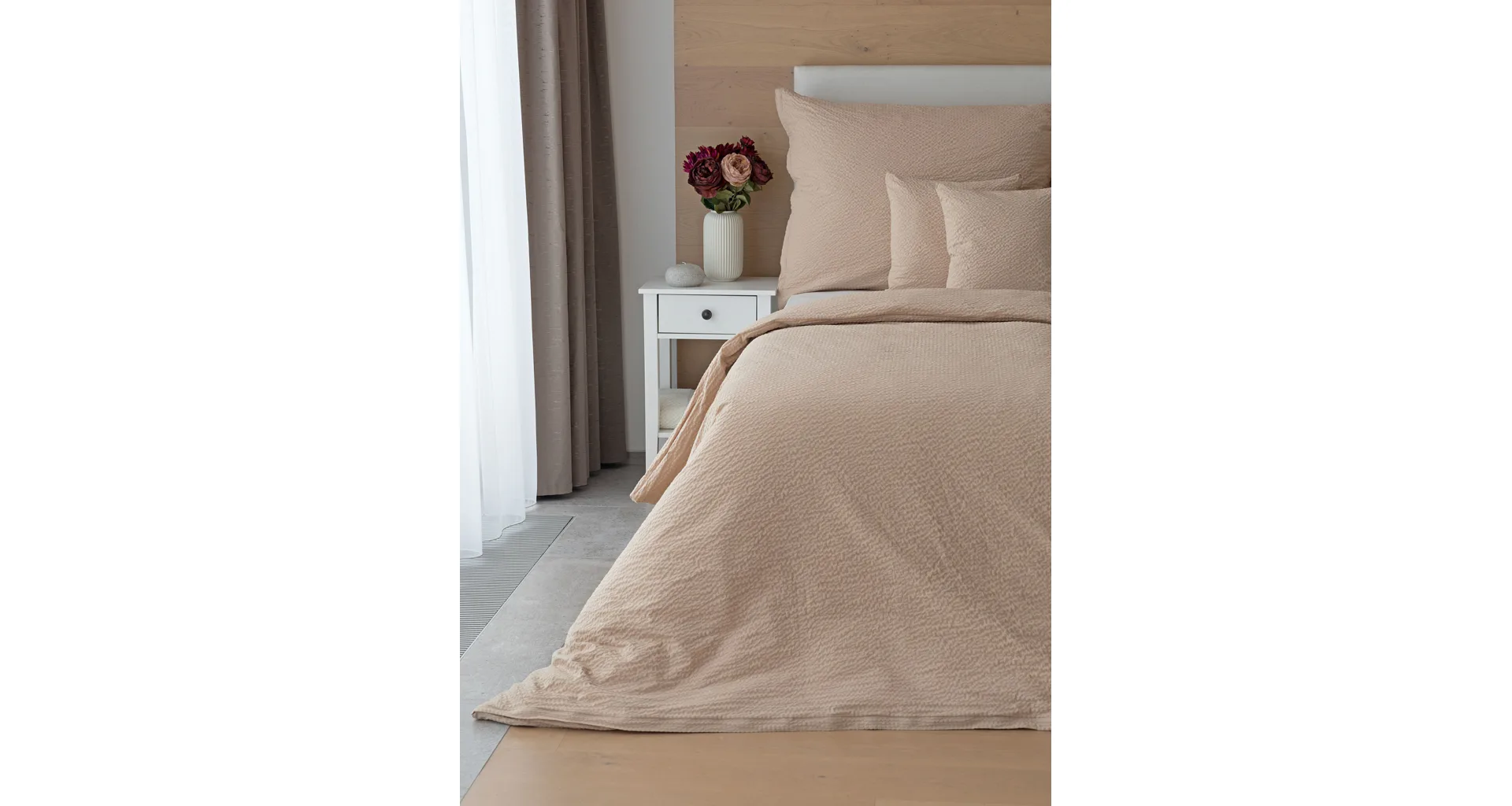 Luxury unicolour crepe bedding is made of 100% cotton and provided with a zipper closure.