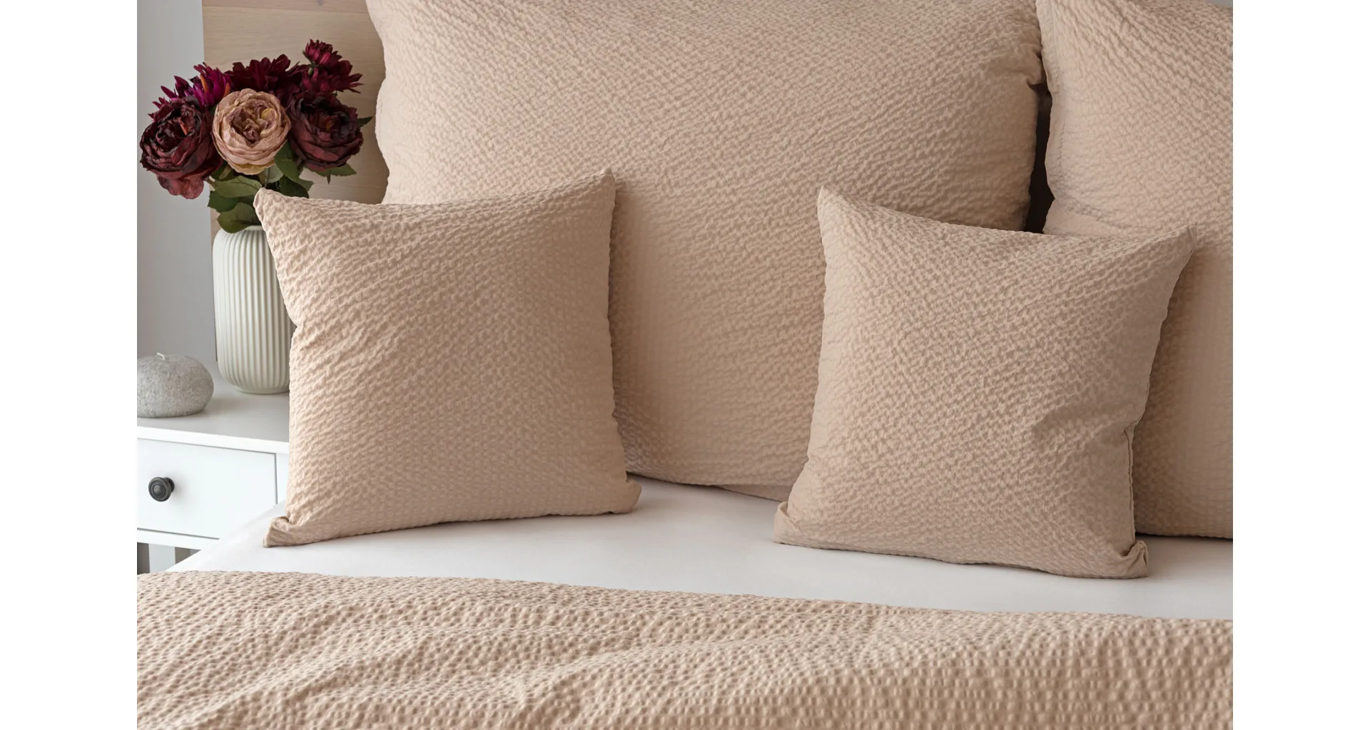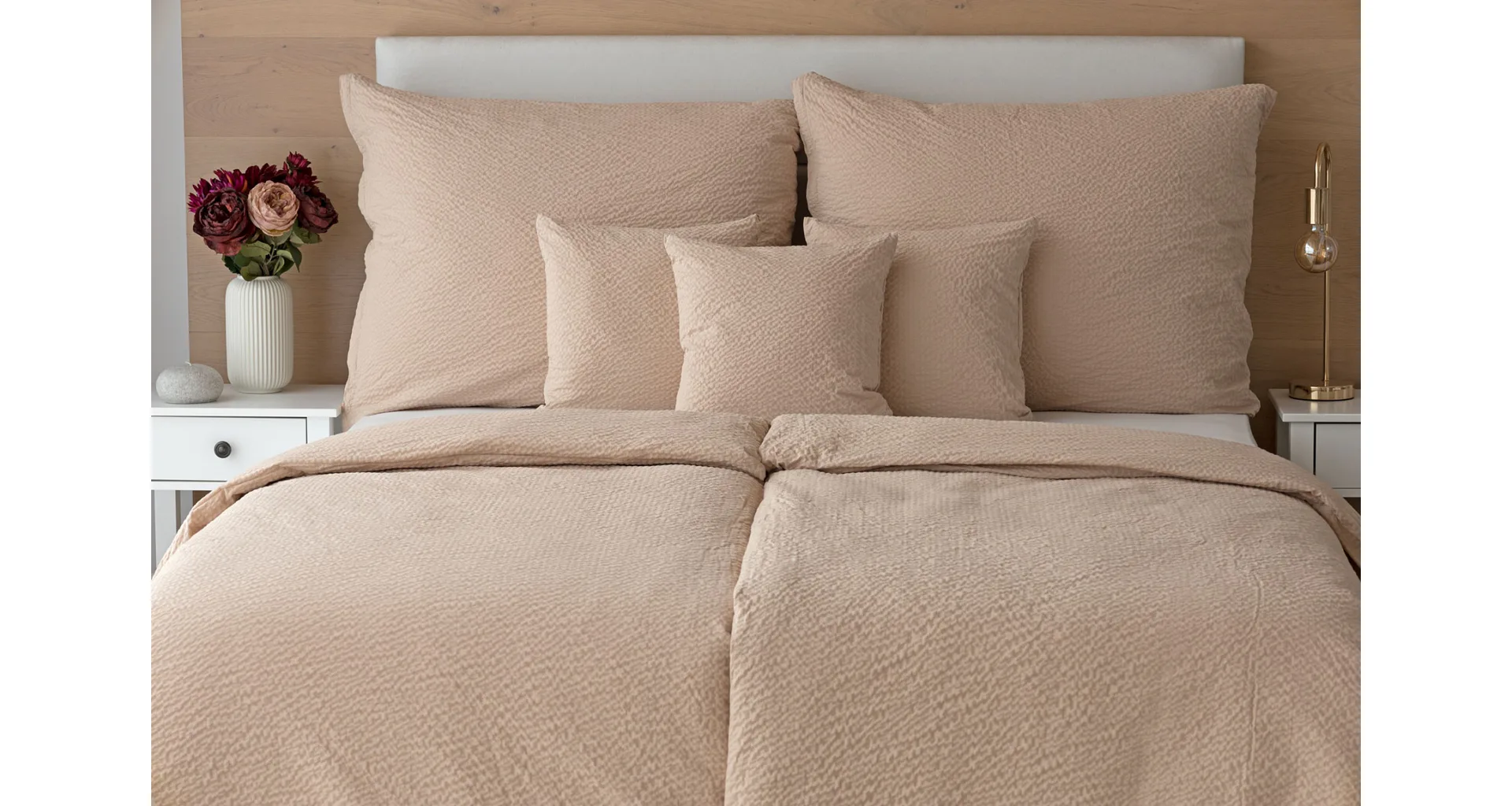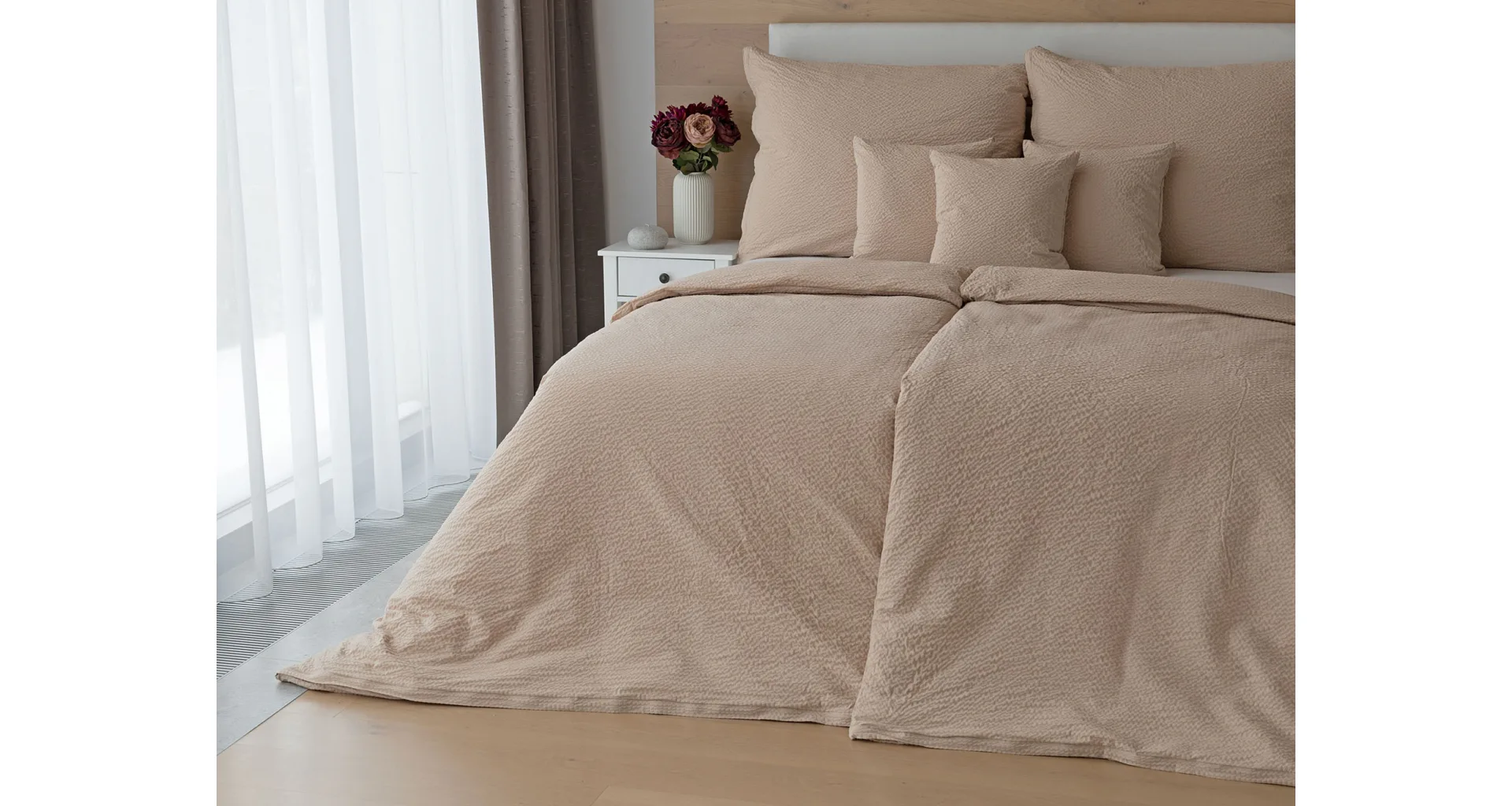 Luxury unicolour crepe bedding is made of 100% cotton and provided with a zipper closure.
