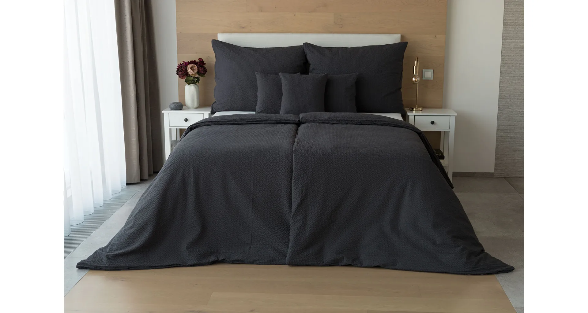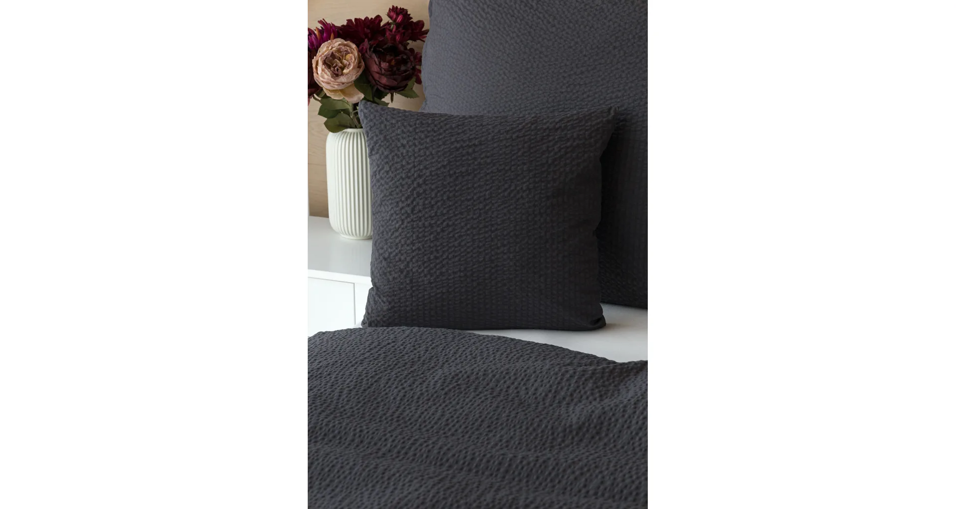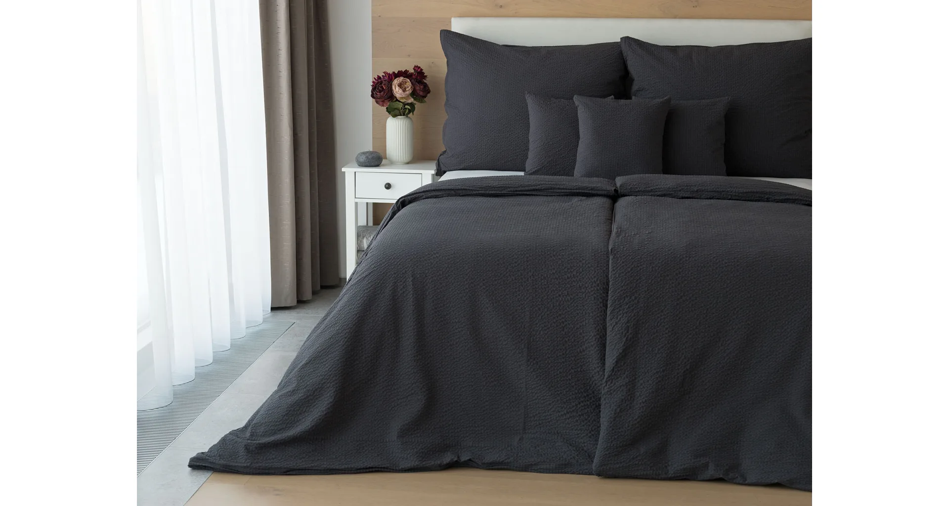 Luxury unicolour crepe bedding is made of 100% cotton and provided with a zipper closure.