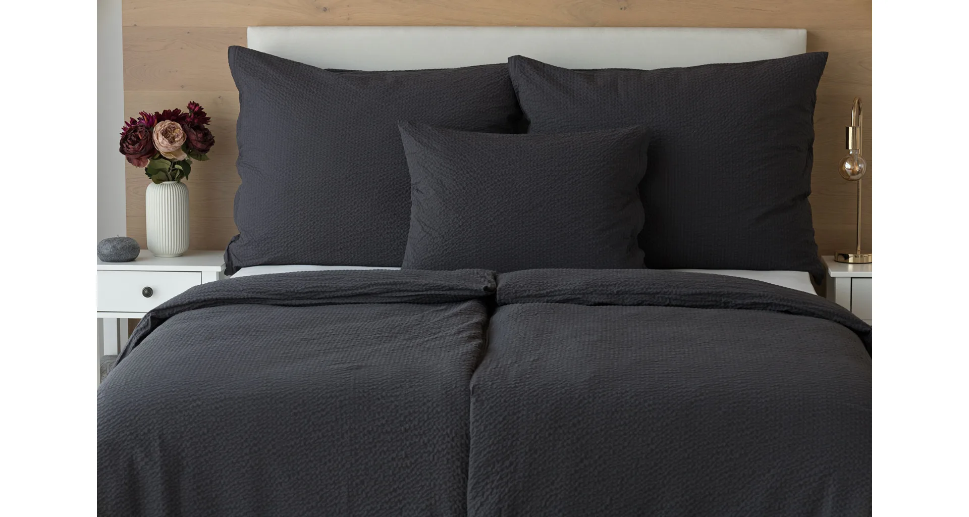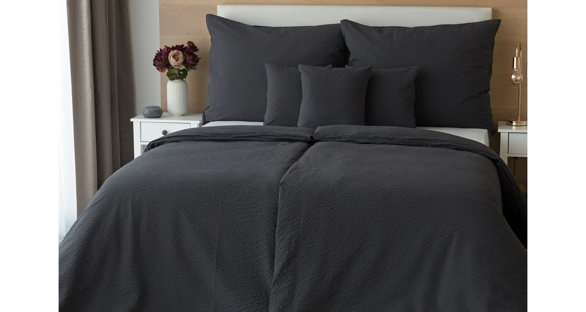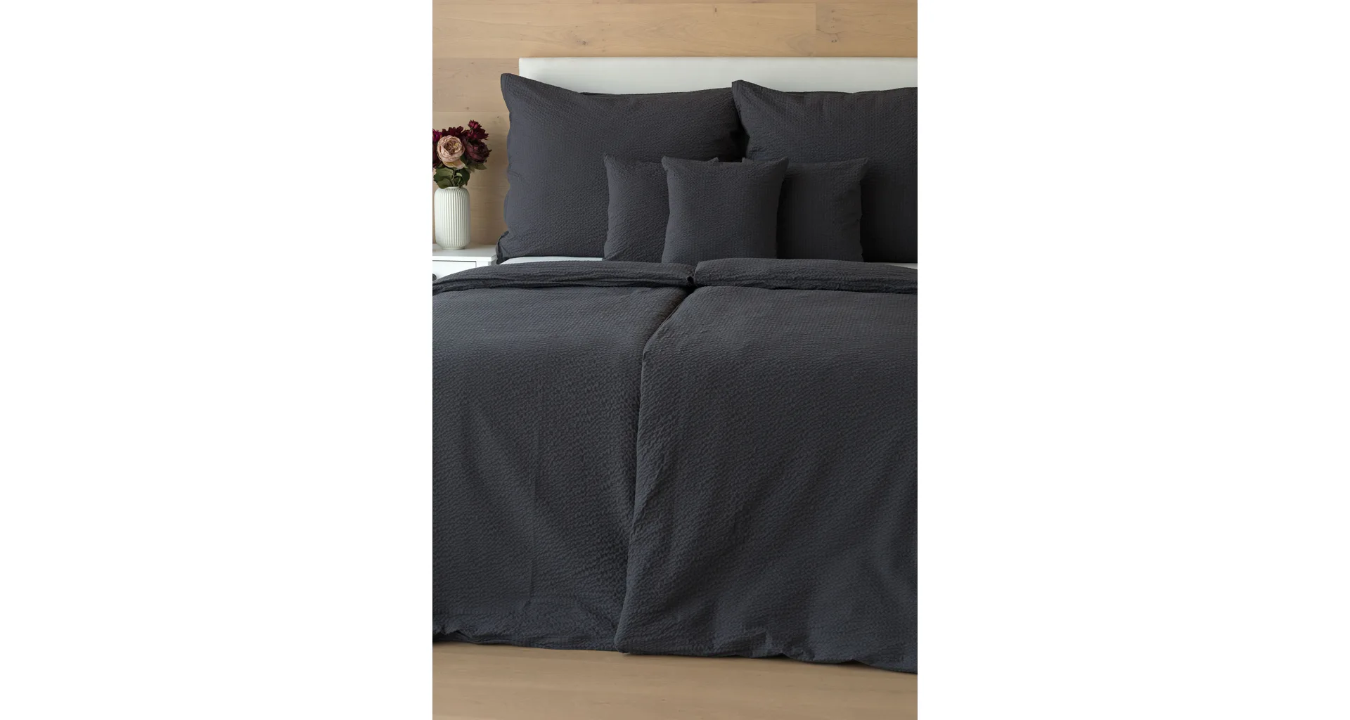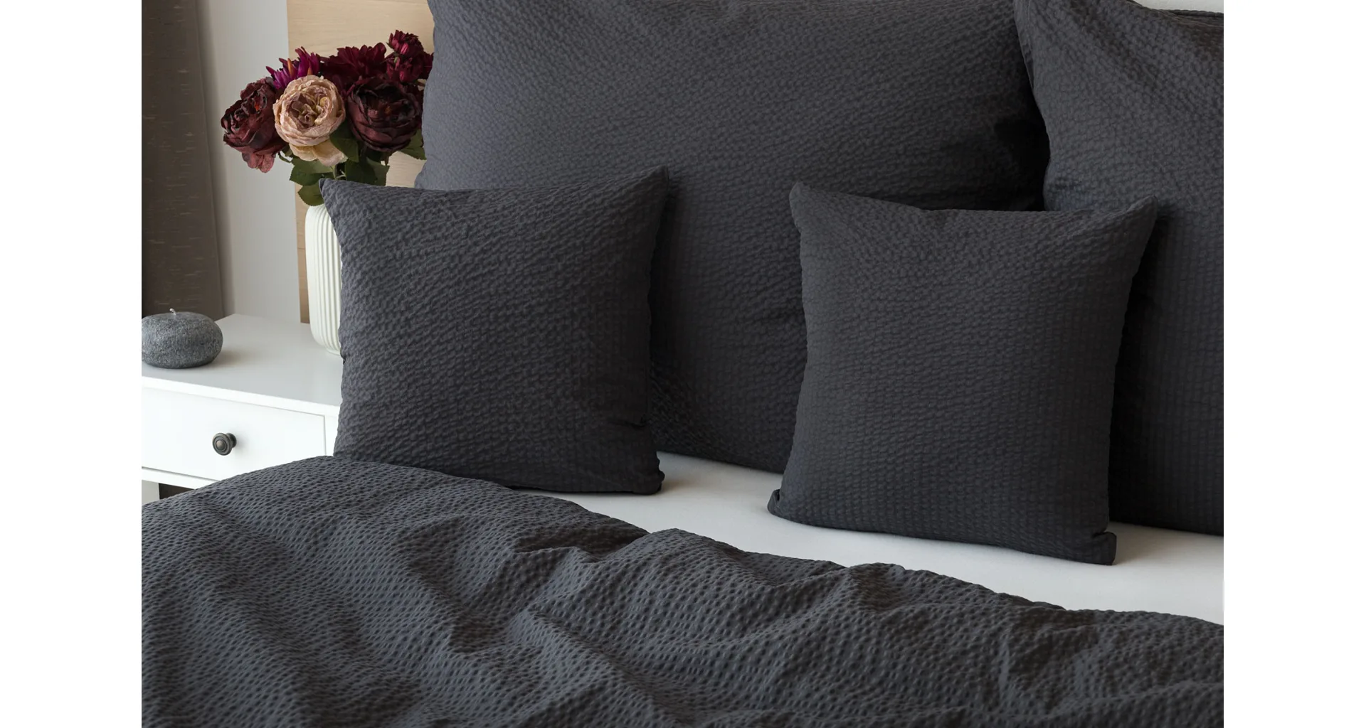 Luxury unicolour crepe bedding is made of 100% cotton and provided with a zipper closure.
