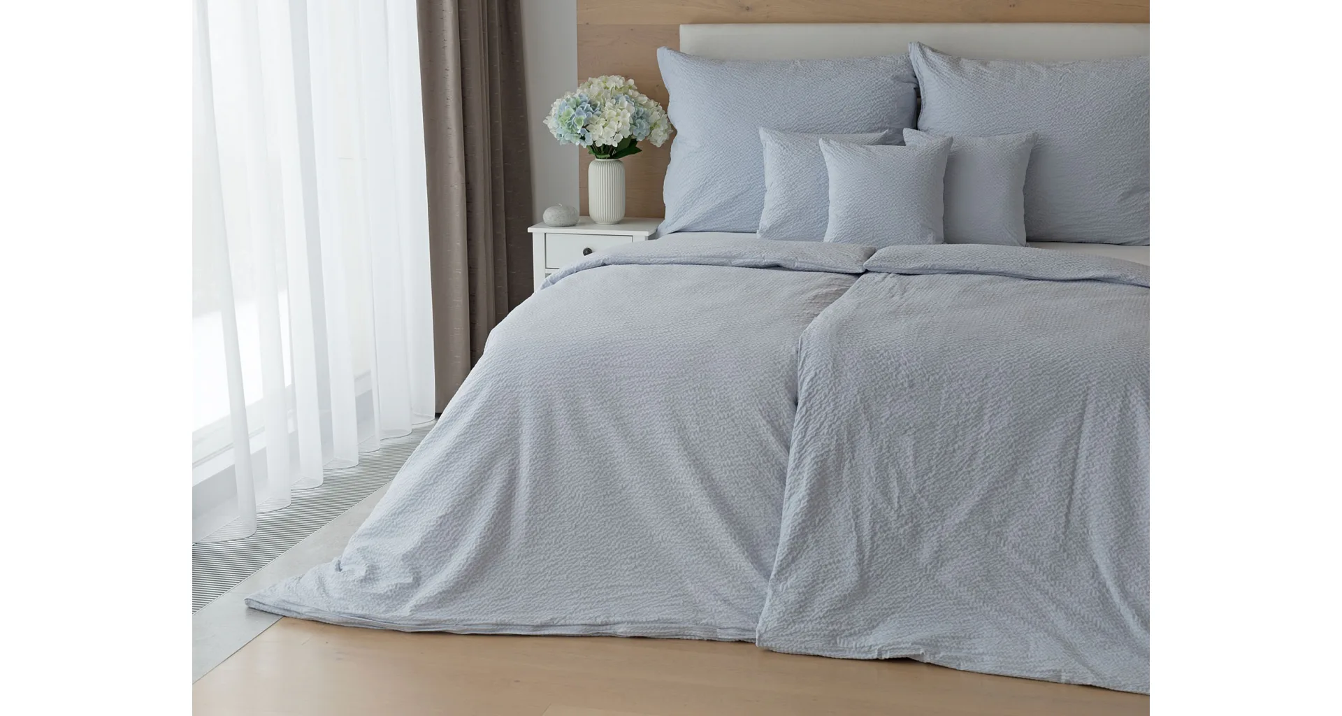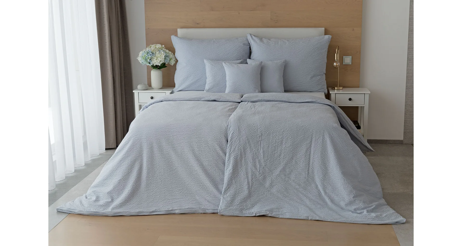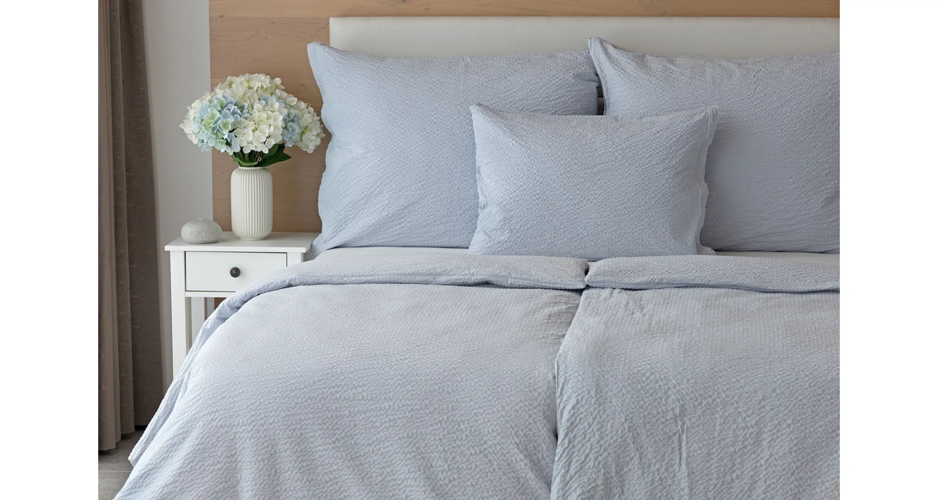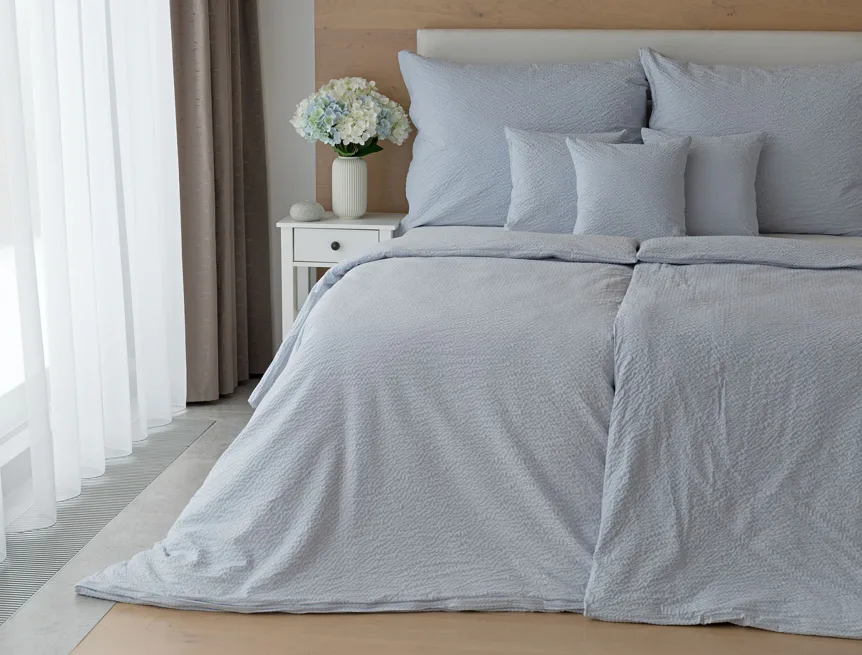 Luxury unicolour crepe bedding is made of 100% cotton and provided with a zipper closure.