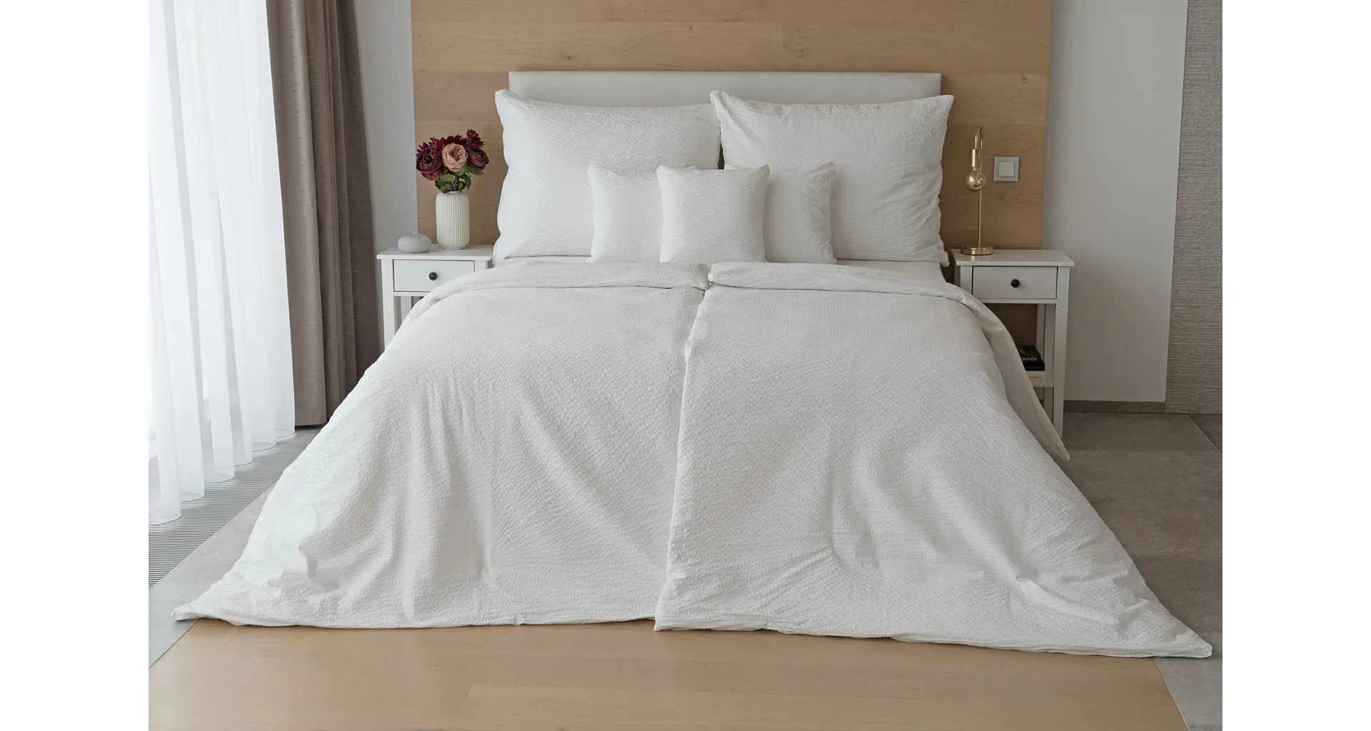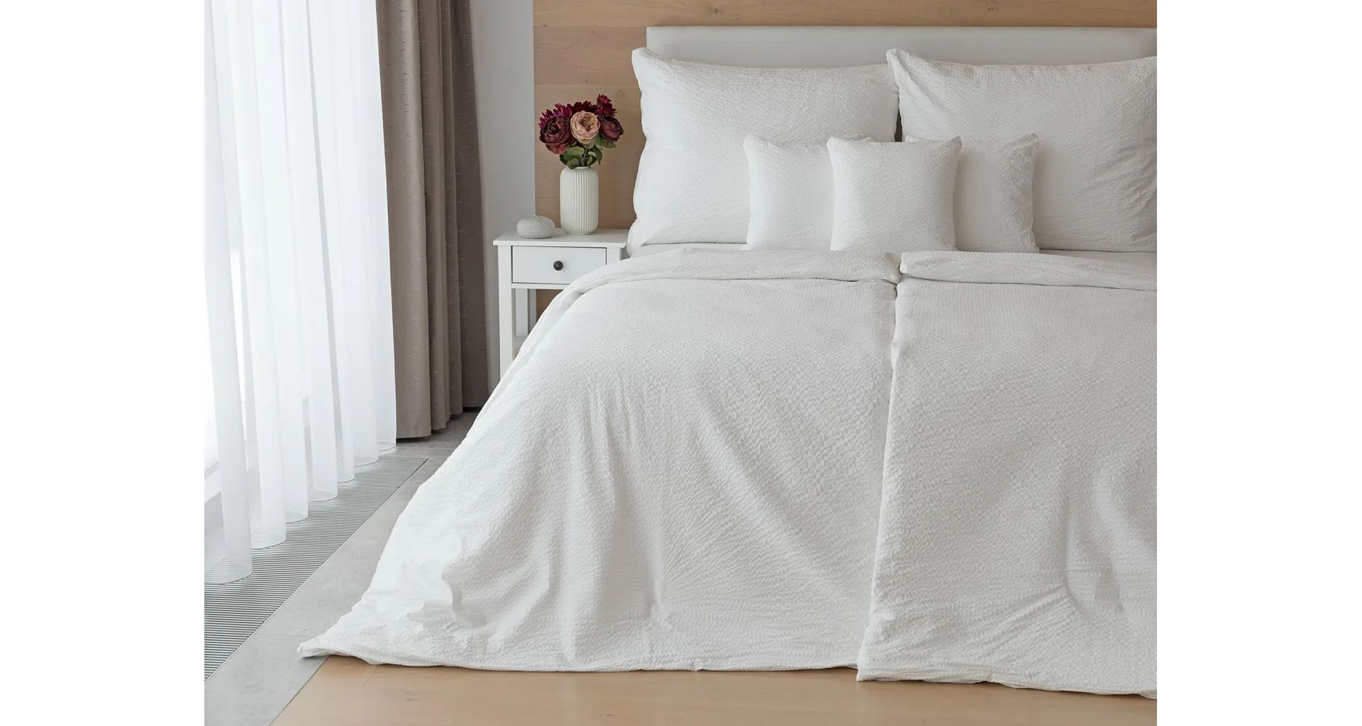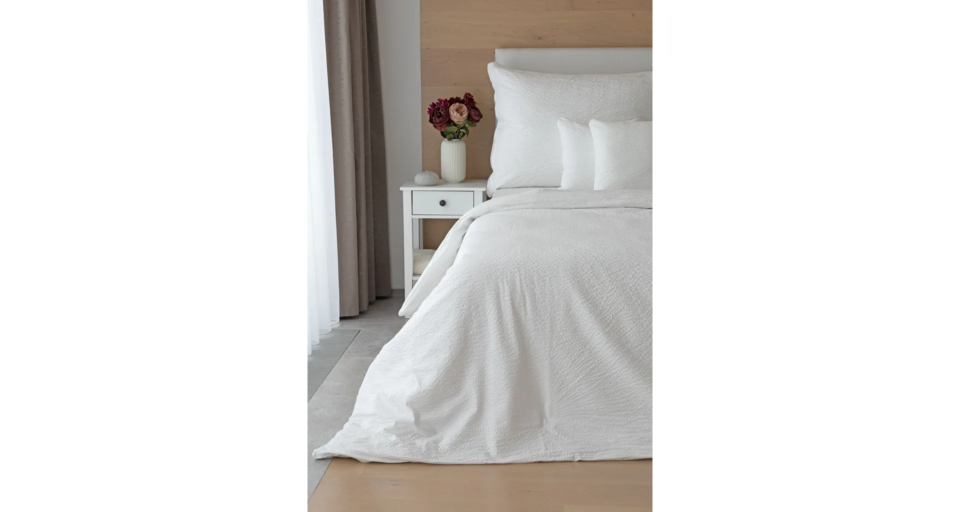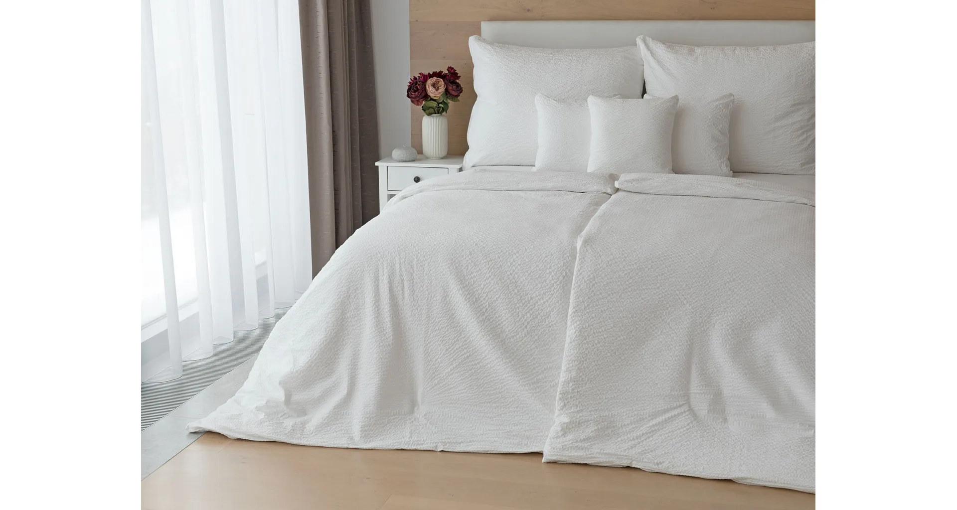 Give your bedroom timeless style and elegance with a uni colored crepe bedding. The fine crepe texture gives white bedding a unique look and provides comfort without maintenance requirements. Crepe material is non-iron!