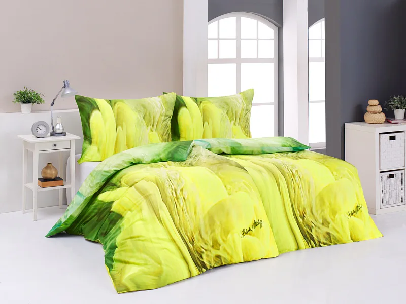 Let yourself be enchanted with the unique combination of strong yellow and green tones in the abstract floral pattern of Narcis bedding. Vibrant colors and sophisticated details turn this luxury bed linen into a distinctive piece of art.