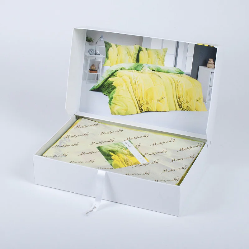 The bed linen is made from luxury mako cotton sateen. It is printed with modern digital print, which ensures that the details are made exactly according to the author´s intention. The bed linen is also printed with Blanka Matragi´s signature – it is placed on the blanket cover, pillowcase and on the small pillowcase. The motive is on both sides of the bed linen, as you can see in the photo. It is also equipped with a zipper closure for easier manipulation.