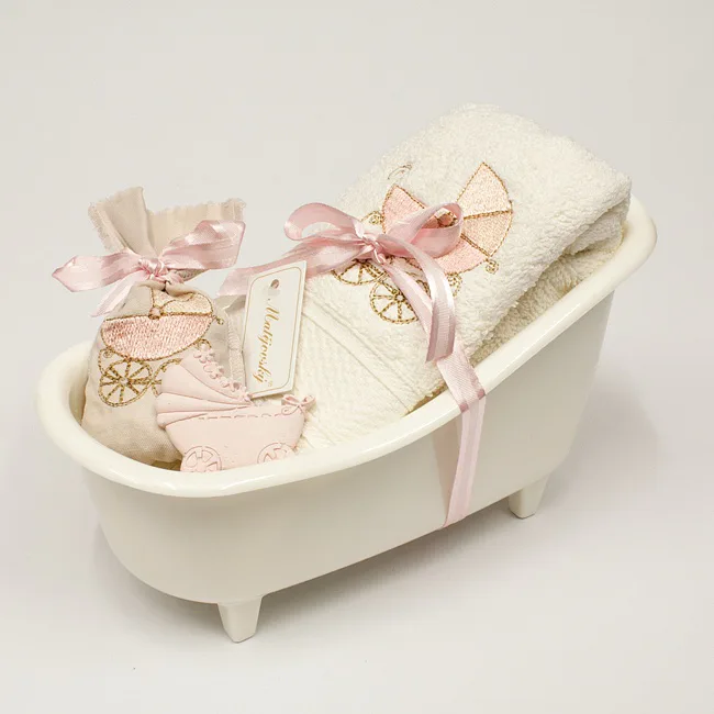 Dárková vanička Kočárek růžový - SET