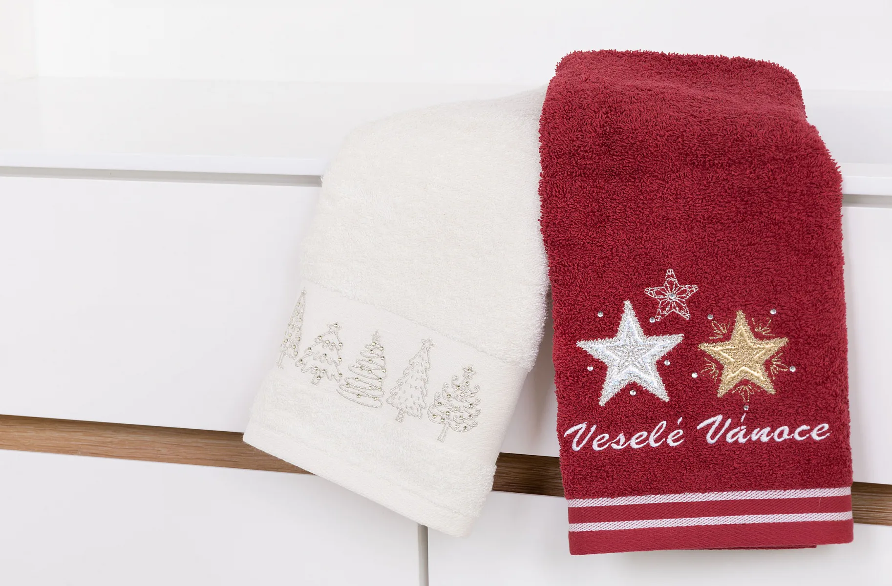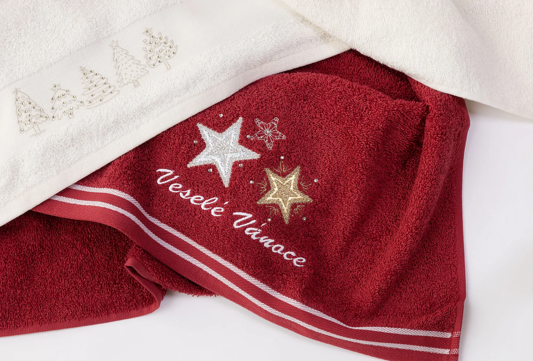 • bílý ručník, výšivka s vánočním motivem