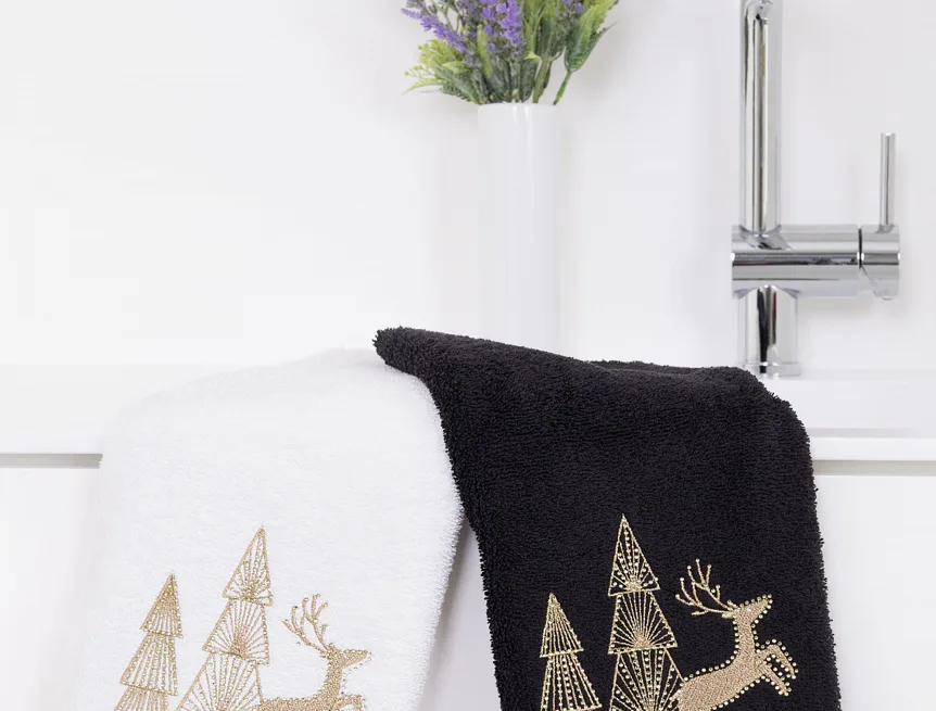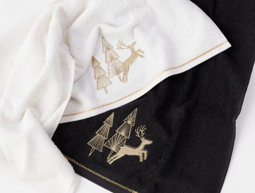 • černý ručník, výšivka s vánočním motivem