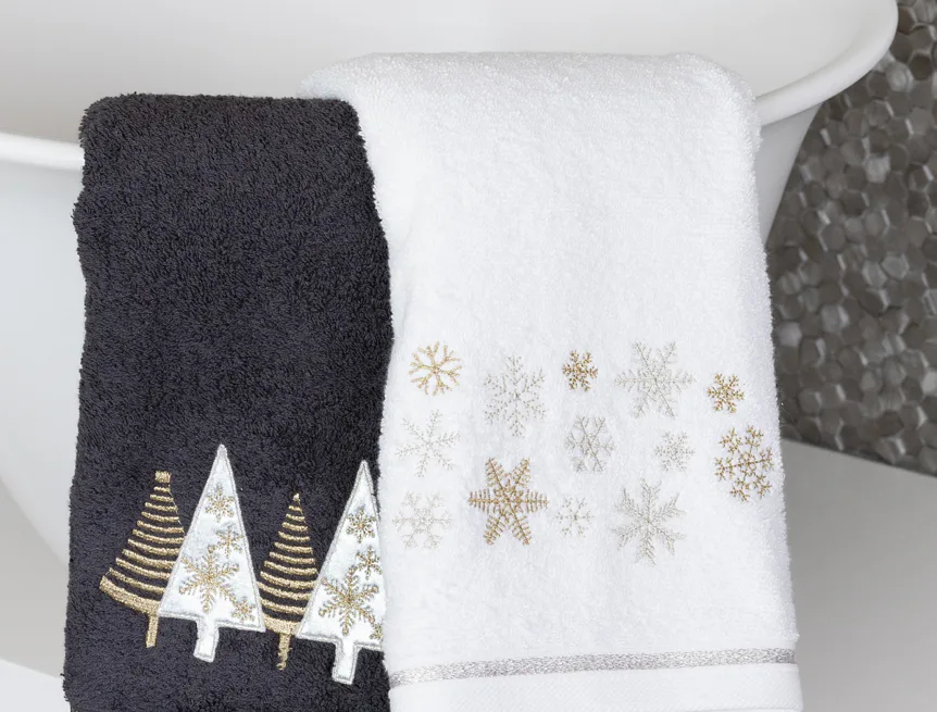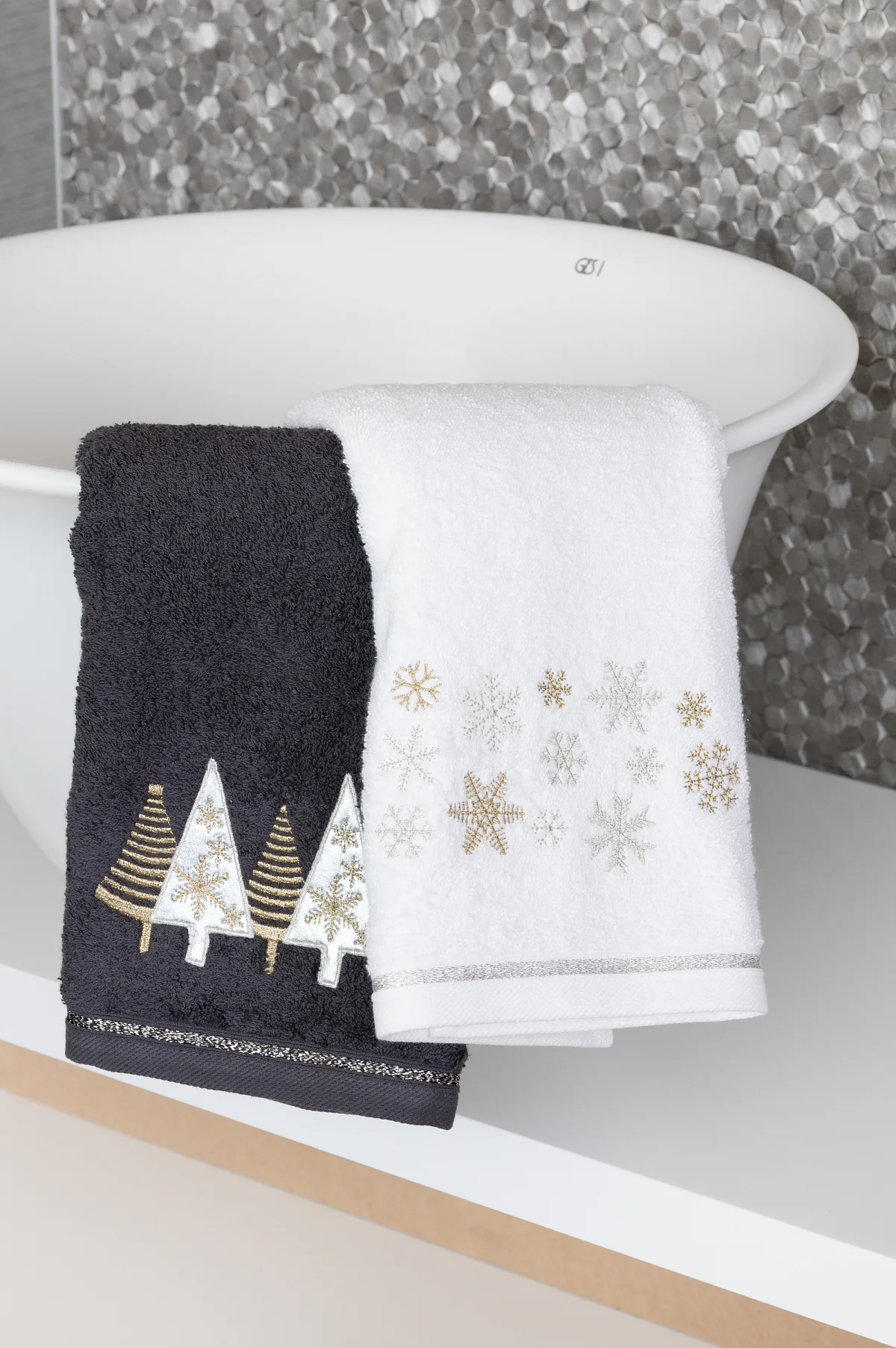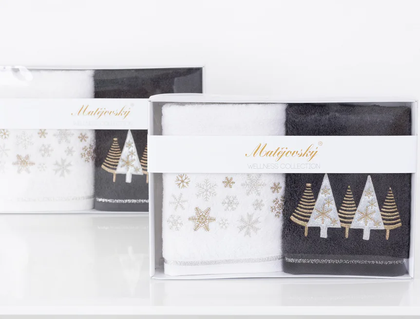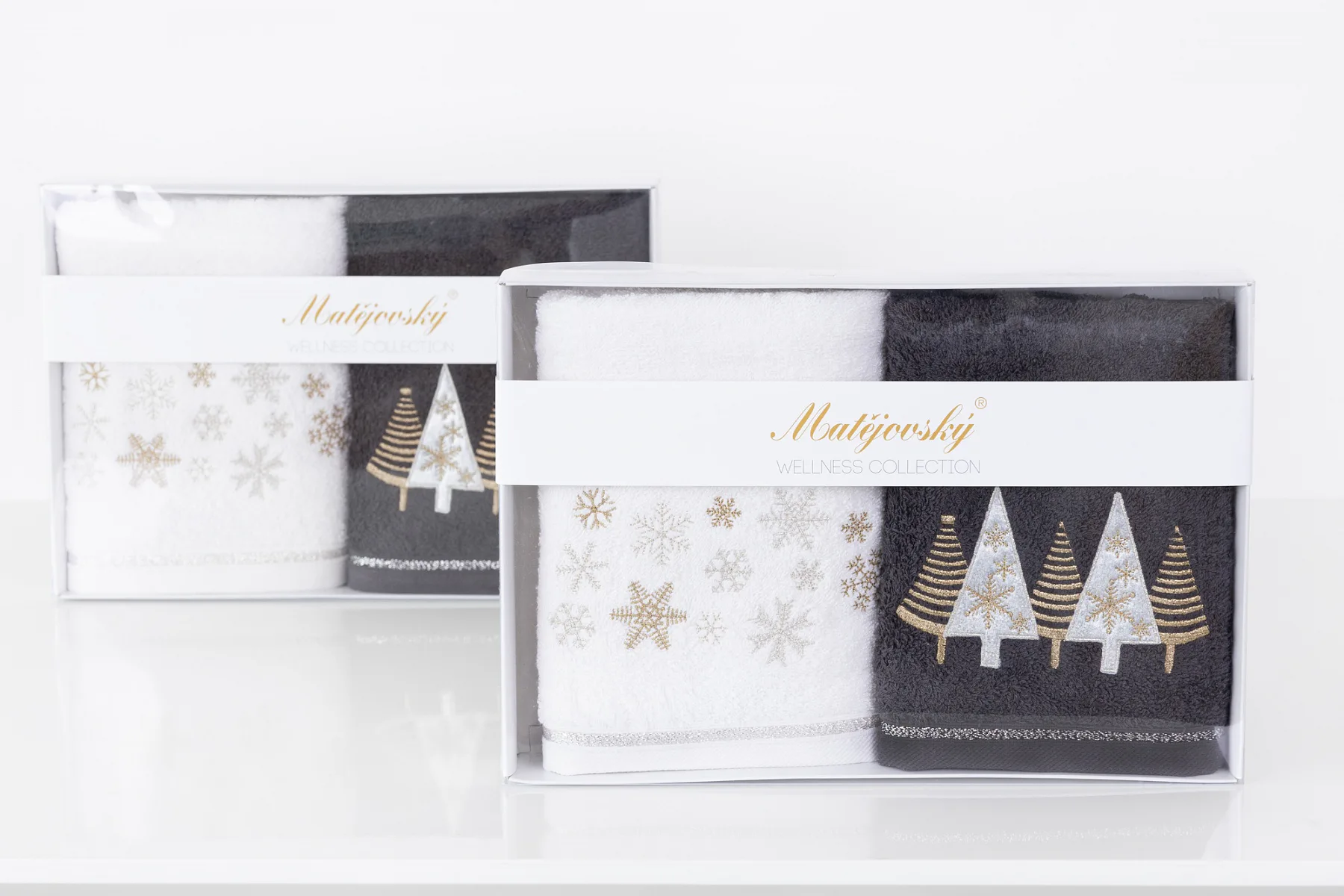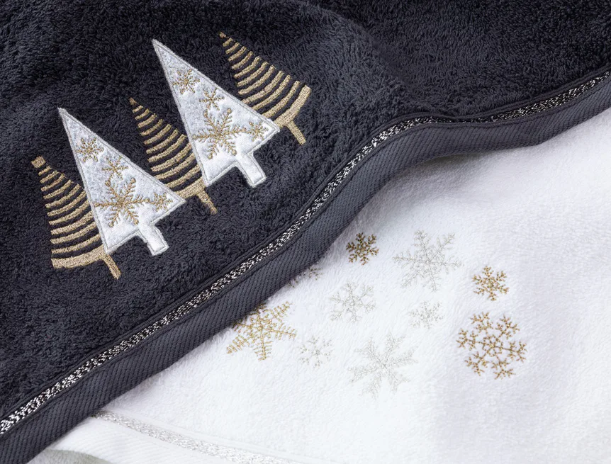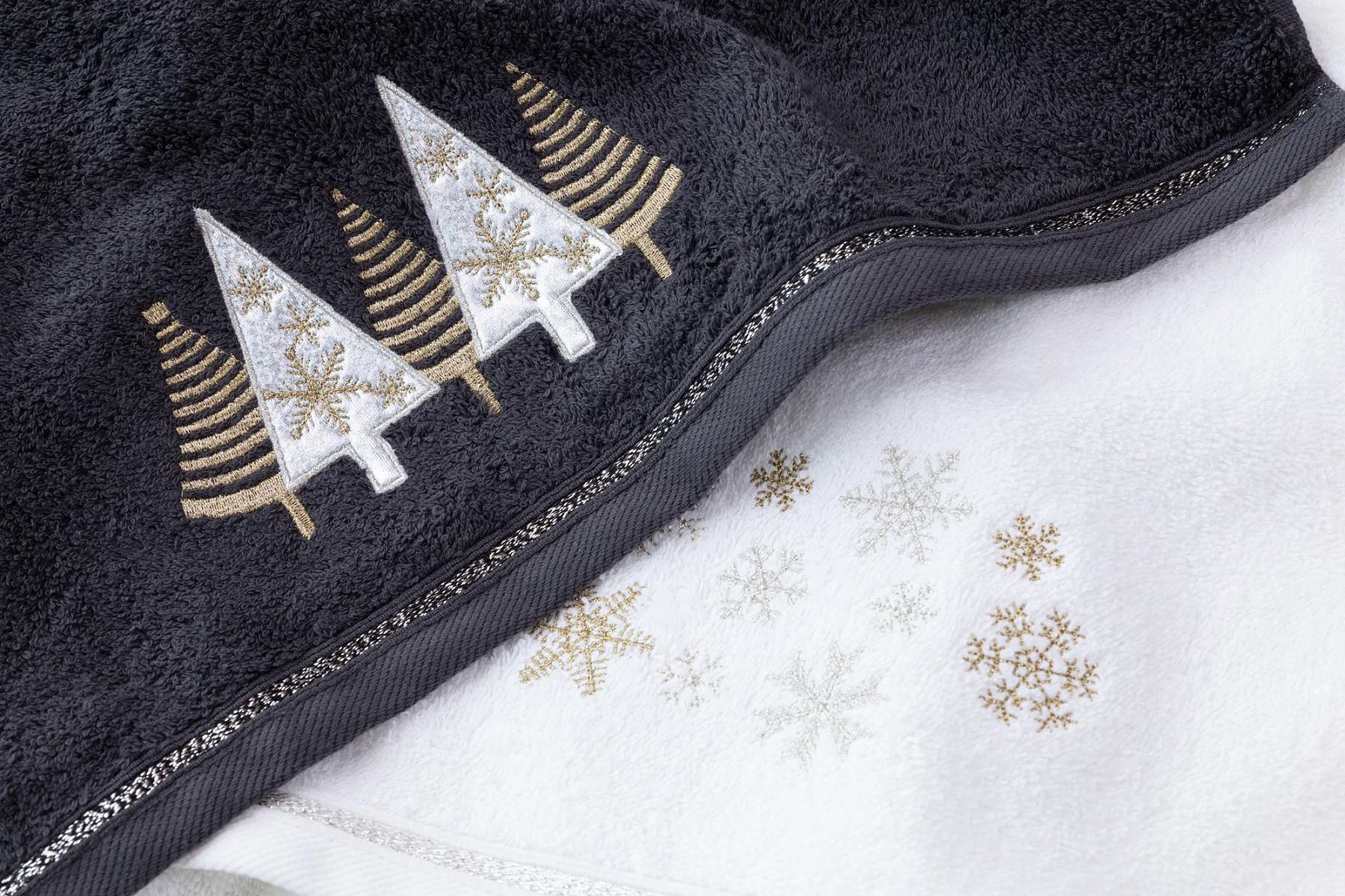 - antracitově šedý ručník, výšivka s motivem vánočních stromků