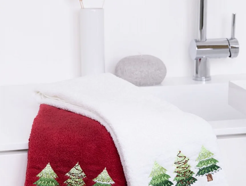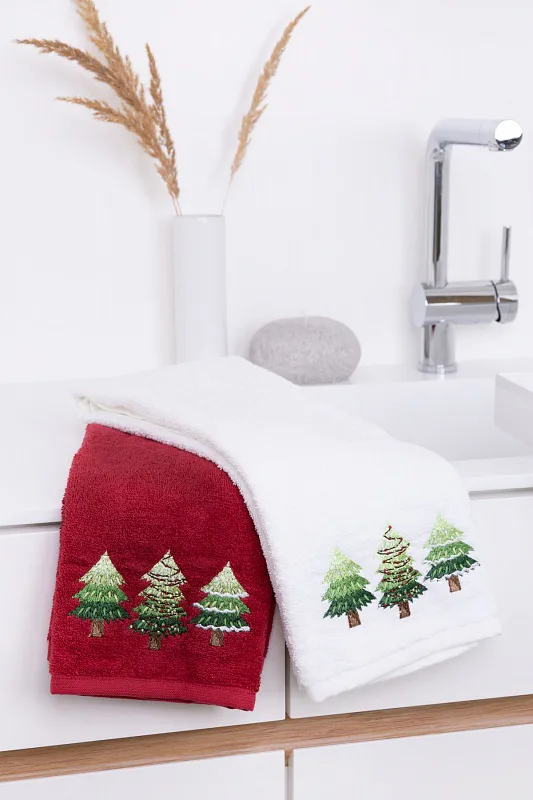 - bílý ručník, výšivka s motivem lesních stromků