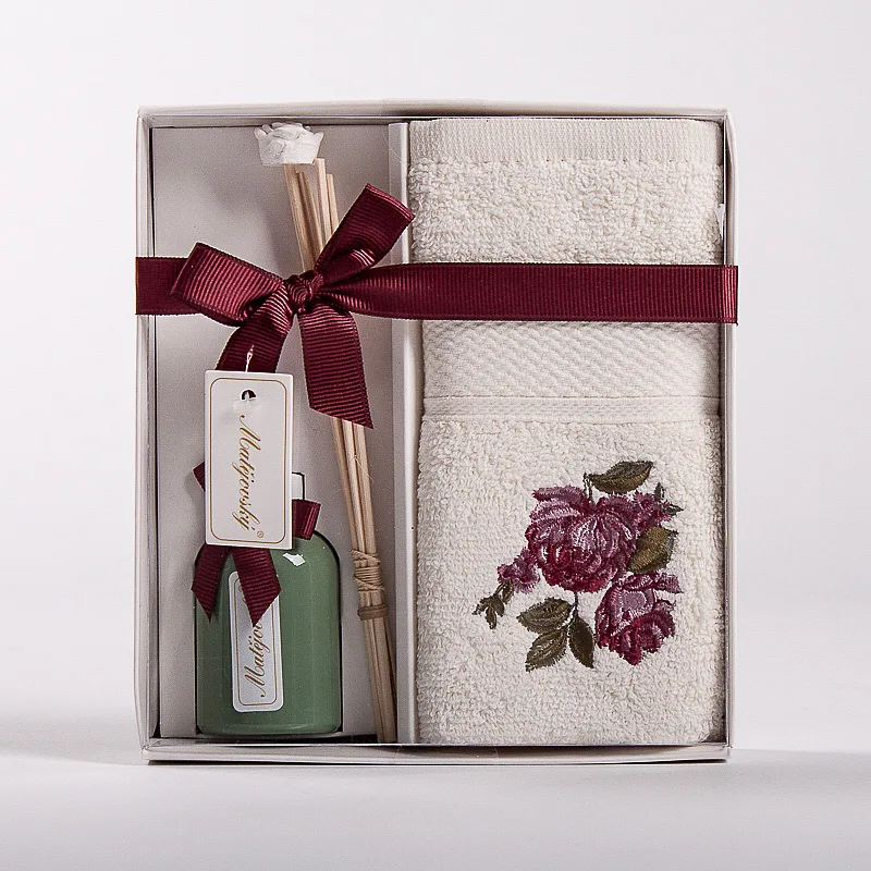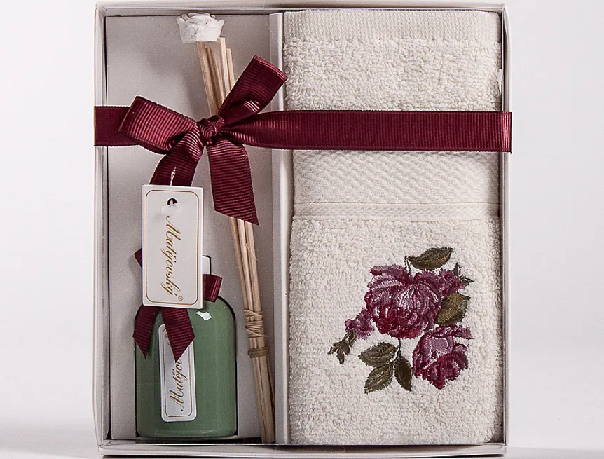Dárkově balený set ručníku a vonného difuzéru potěší každého milovníka praktických dárků.