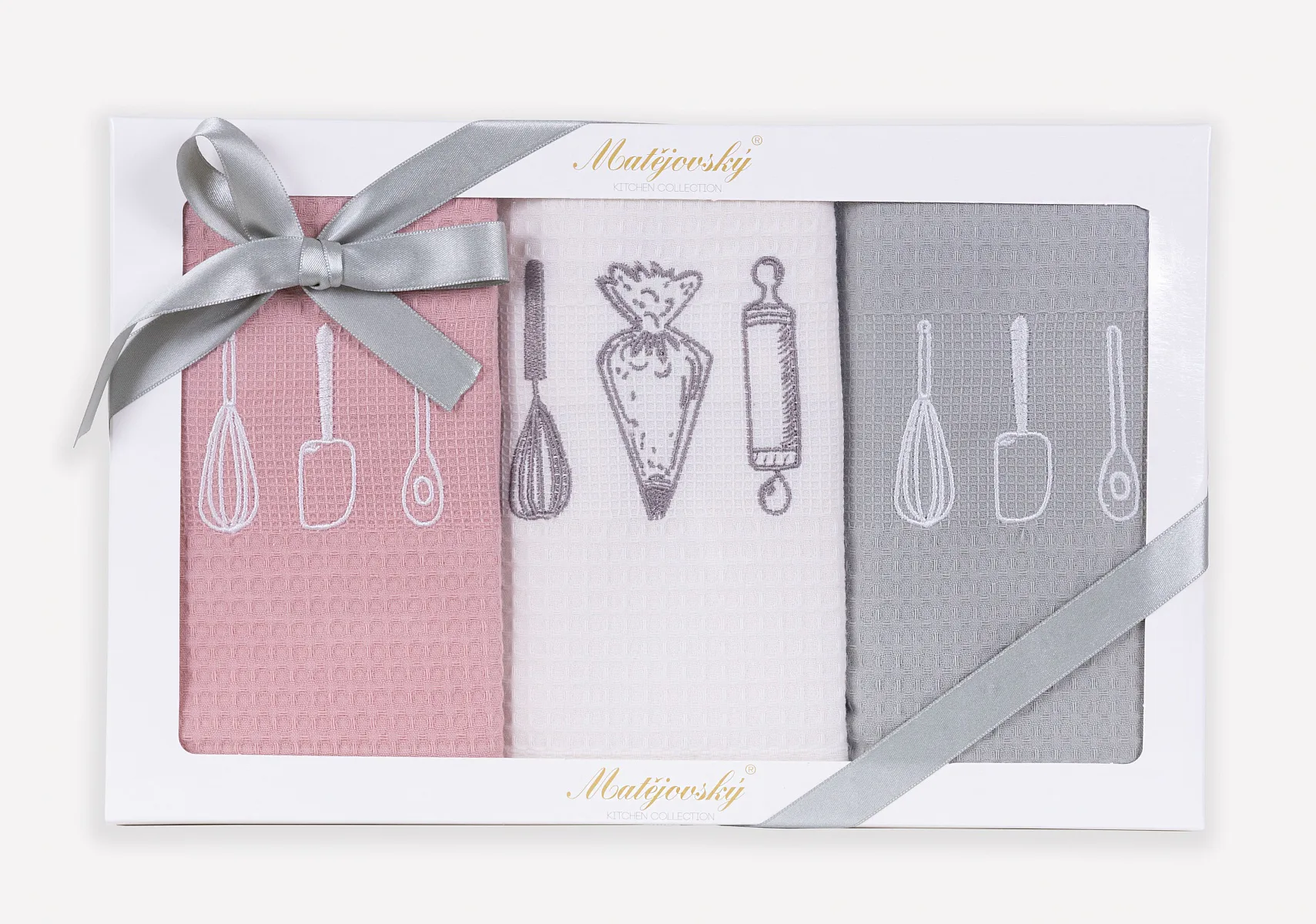 Obsah balení: 3 kusy vaflových utěrek s výšivkou