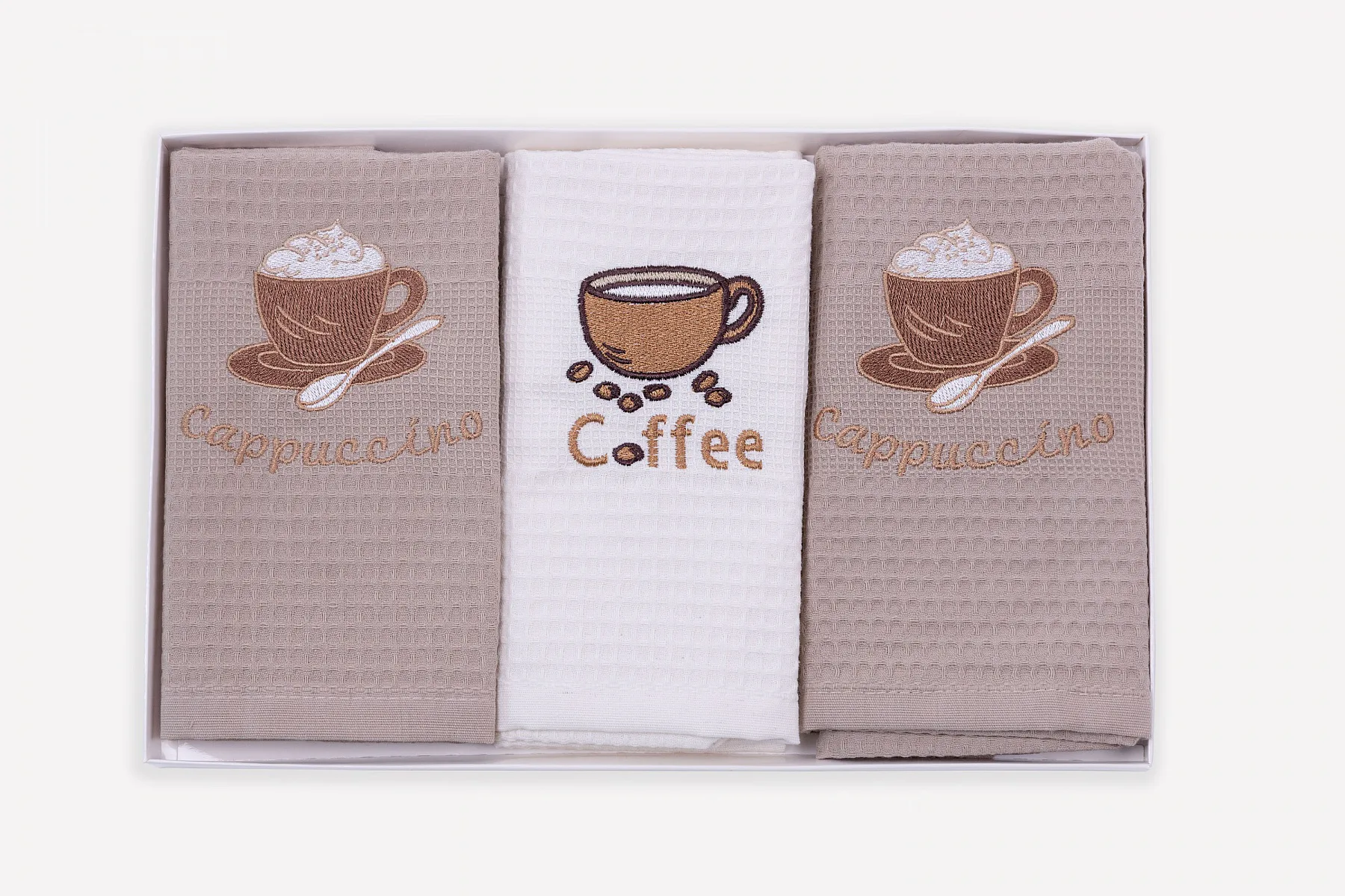 Obsah balení: 3 kusy vaflových utěrek s výšivkou