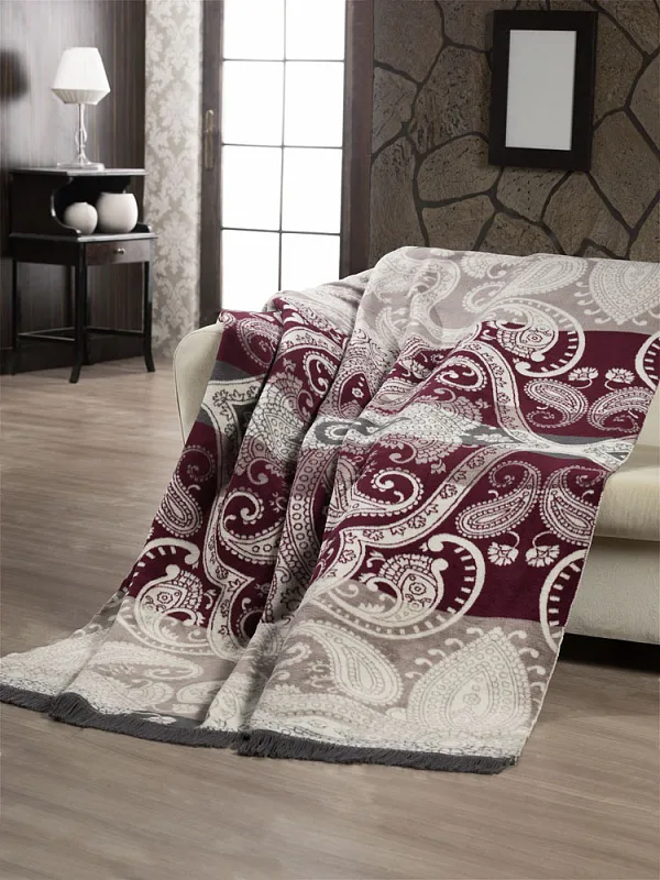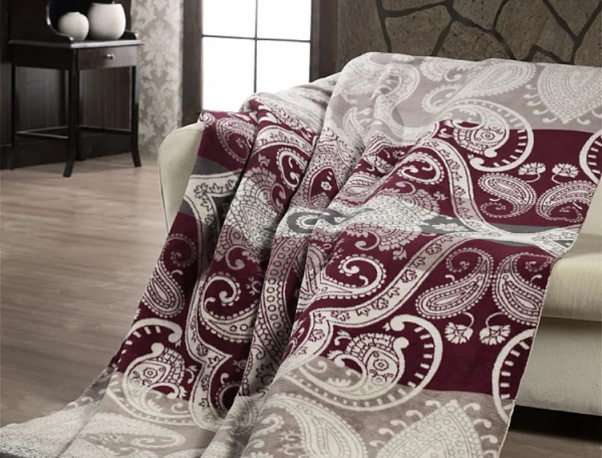 Luxusní deka s hustým vlasem, hřejivá a sametová na omak. Atraktivní dezén ANDRIA zajistí, že deka bude jedinečným doplňkem Vašeho domova a nepostradatelným společníkem pro chladné večery. Deku můžete elegantně využít i jako ozdobný přehoz. Deka je olemována vínovou lemovkou (bez třásní), kombinuje bohatý kašmírový vzor v barvách béžové, bílé kávy a vínové.