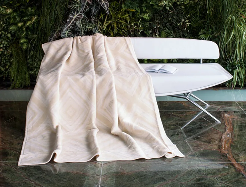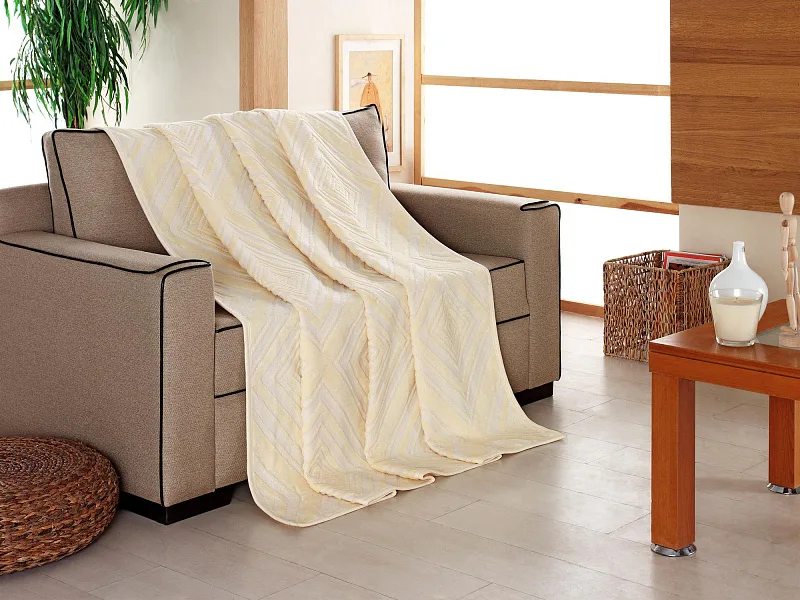 Embosované deky jsou vkusným bytovým doplňkem a báječným společníkem pro chladné večery. Vyzkoušejte ho také jako ozdobný přehoz. Dokonale sladěné tóny jemné vanilky a smetanové, které zobrazují geometrické obrazce.