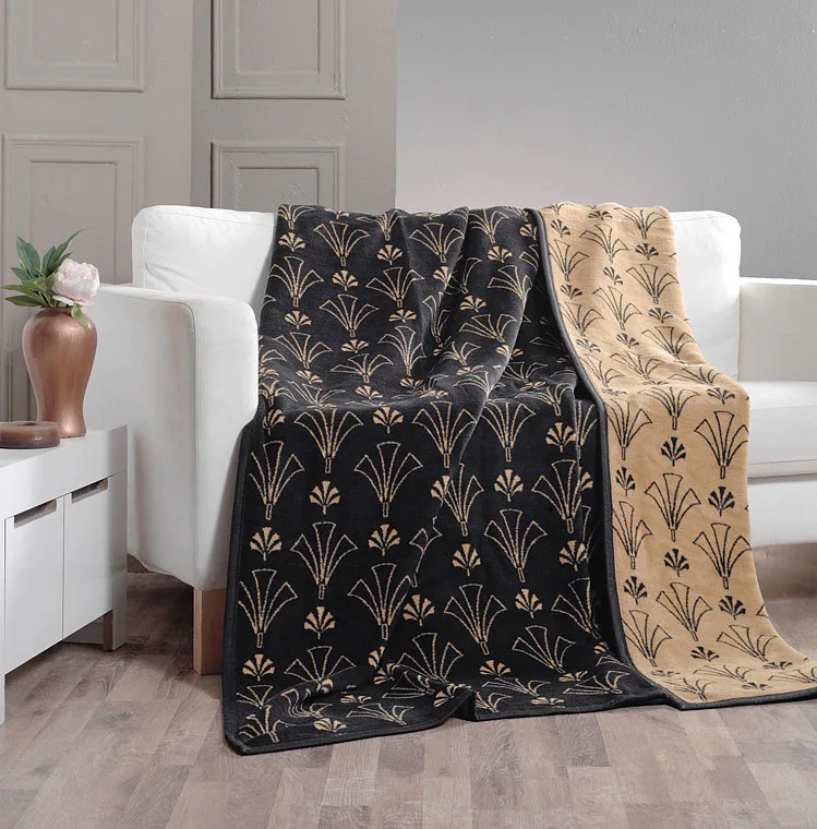 Luxusní bavlněná deka s hustým vlasem, hřejivá a hebká na omak. Nová receptura tkaní je zárukou lehkosti a skvělé prodyšnosti. Deka CORDONA bude jedinečným doplňkem vašeho domova a nepostradatelným společníkem pro chladné večery. Kontrastní kombinace trendy zlatavé s temně šedou nechá vyniknout jednoduchý vějířový vzor.