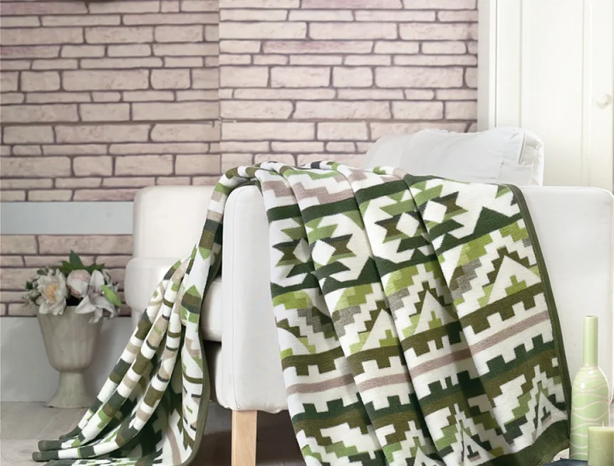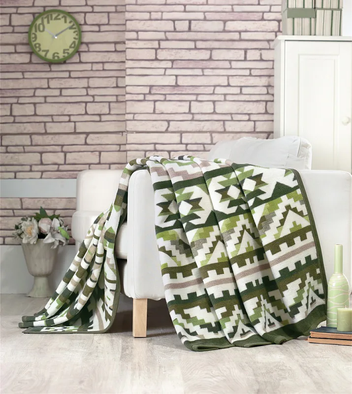 Luxusní bavlněná deka s hustým vlasem, hřejivá a hebká na omak. Nová receptura tkaní je zárukou lehkosti a skvělé prodyšnosti. Deka ETNO bude jedinečným doplňkem vašeho domova a nepostradatelným společníkem pro chladné večery. Etno motiv v odstínech trávově zelené v kombinaci s teplou hnědoušedou barvou se vyjímá na přírodním bílém podkladu. Spodní strana deky je provedena inverzně.