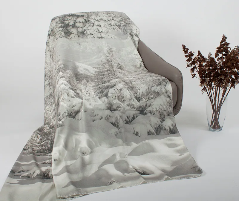 Pléd je opatřen digitálním potiskem pouze z jedné strany, zadní strana deky je bílá. Okraje zdobí decentní obšití v bílé barvě.
