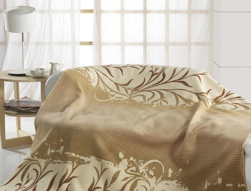 Luxusní deka s hustým vlasem, hřejivá a sametová na omak. Atraktivní dezén MALIA zajistí, že deka bude jedinečným doplňkem Vašeho domova a nepostradatelným společníkem pro chladné večery. Deku můžete elegantně využít i jako ozdobný přehoz. Deka je olemována světle hnědou lemovkou, kombinuje jemný florální motiv a decentních přírodních barvách (světlá vanilka, bílá káva s karamelovými odstíny).