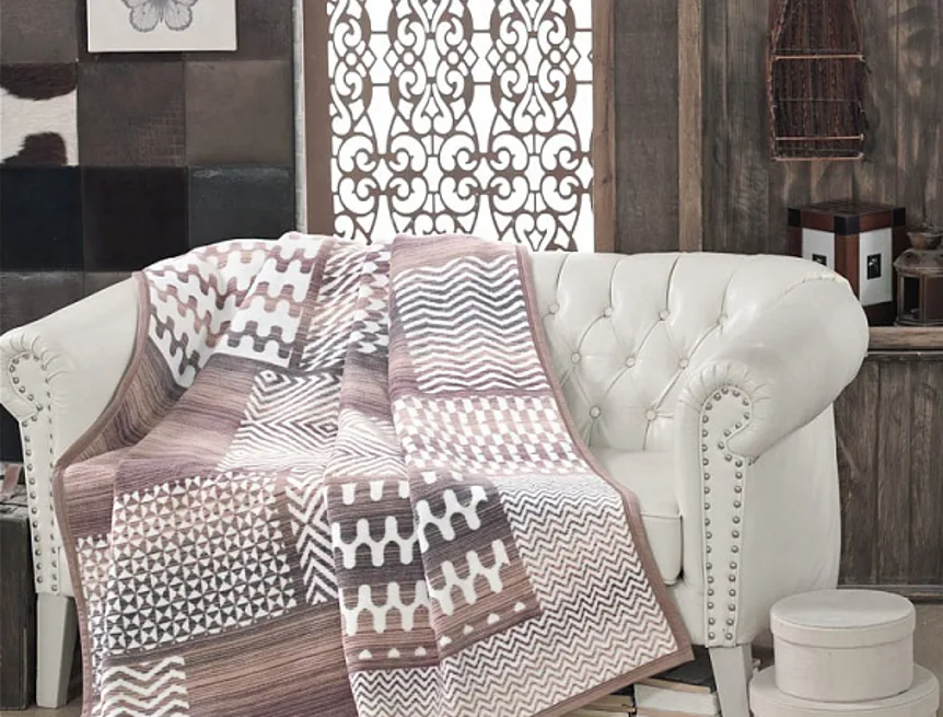 Deku můžete elegantně využít i jako ozdobný přehoz. Deka je olemována hnědou lemovkou.