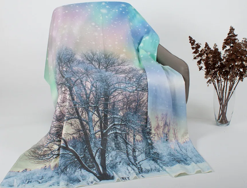 Lehké jako vánek, úžasně hebké a příjemně hřejivé jsou nové designové plédy s digitálním potiskem. Pléd Polární záře vám zpříjemní chladné zimní večery a díky atraktivnímu designu poslouží také jako ozdobný přehoz.