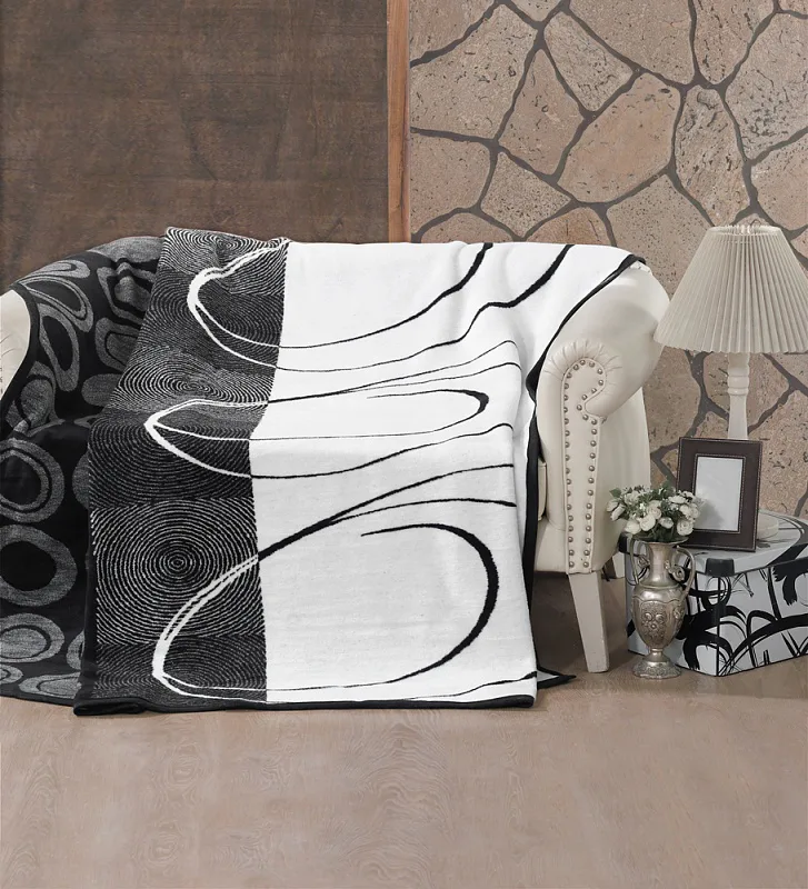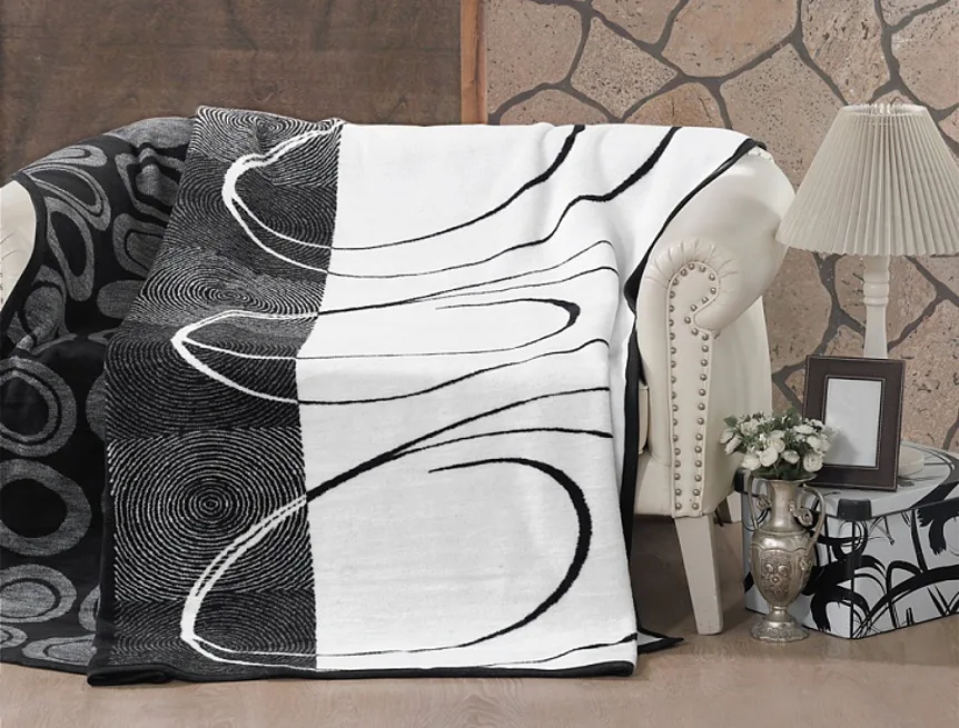 Luxusní bavlněná deka s hustým vlasem, hřejivá a hebká na omak. Oblíbený černobílý dezén ROYAL BLACK bude jedinečným doplňkem vašeho domova a nepostradatelným společníkem nejen pro chladné večery. Deka je z druhé strany provedena inverzně. Bílé plochy mají jemný melír.
