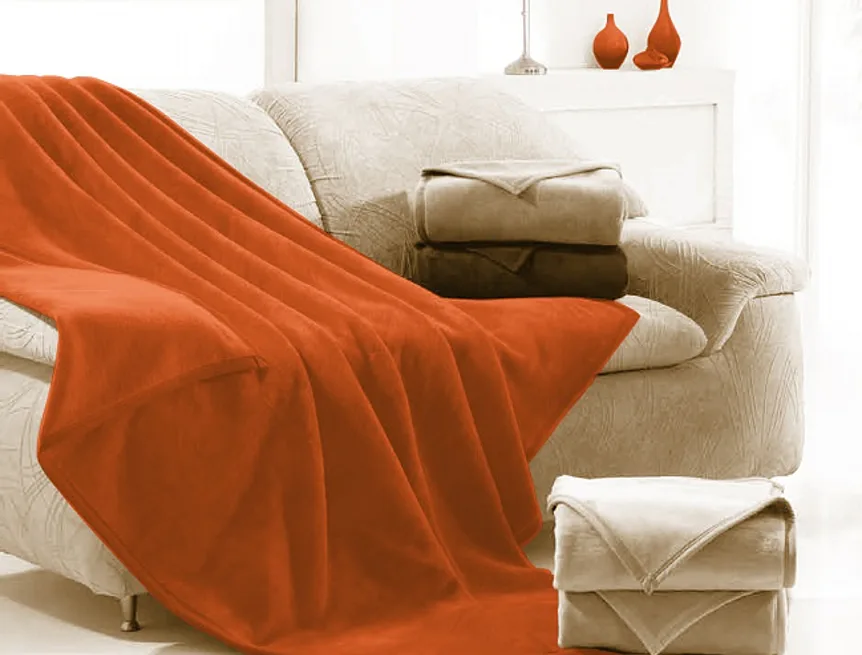 Jednobarevnou deku můžete elegantně využít i jako ozdobný přehoz. Deka je olemována lemovkou.