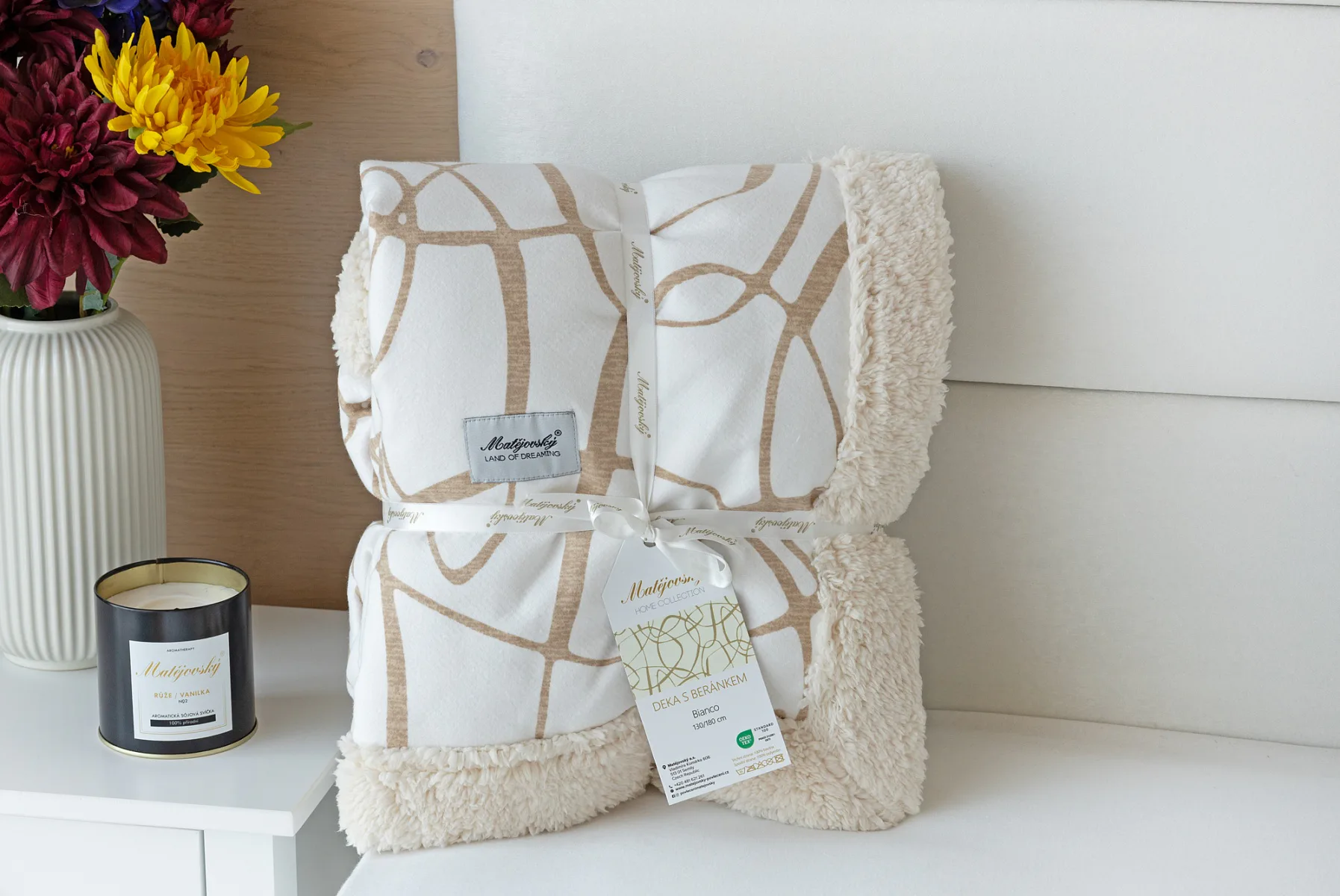 Díky pečlivě vybraným motivům, které lze kombinovat s ložním povlečením a dalšími bytovými doplňky, nesmí beránková deka Bianco chybět ve vaší domácí oáze klidu a pohody.