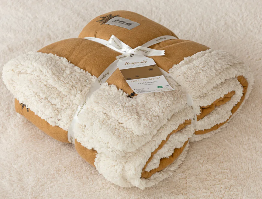 Díky pečlivě vybraným motivům, které lze kombinovat s ložním povlečením a dalšími bytovými doplňky, nesmí beránková deka Gold Christmas chybět ve vaší domácí oáze klidu a pohody.
