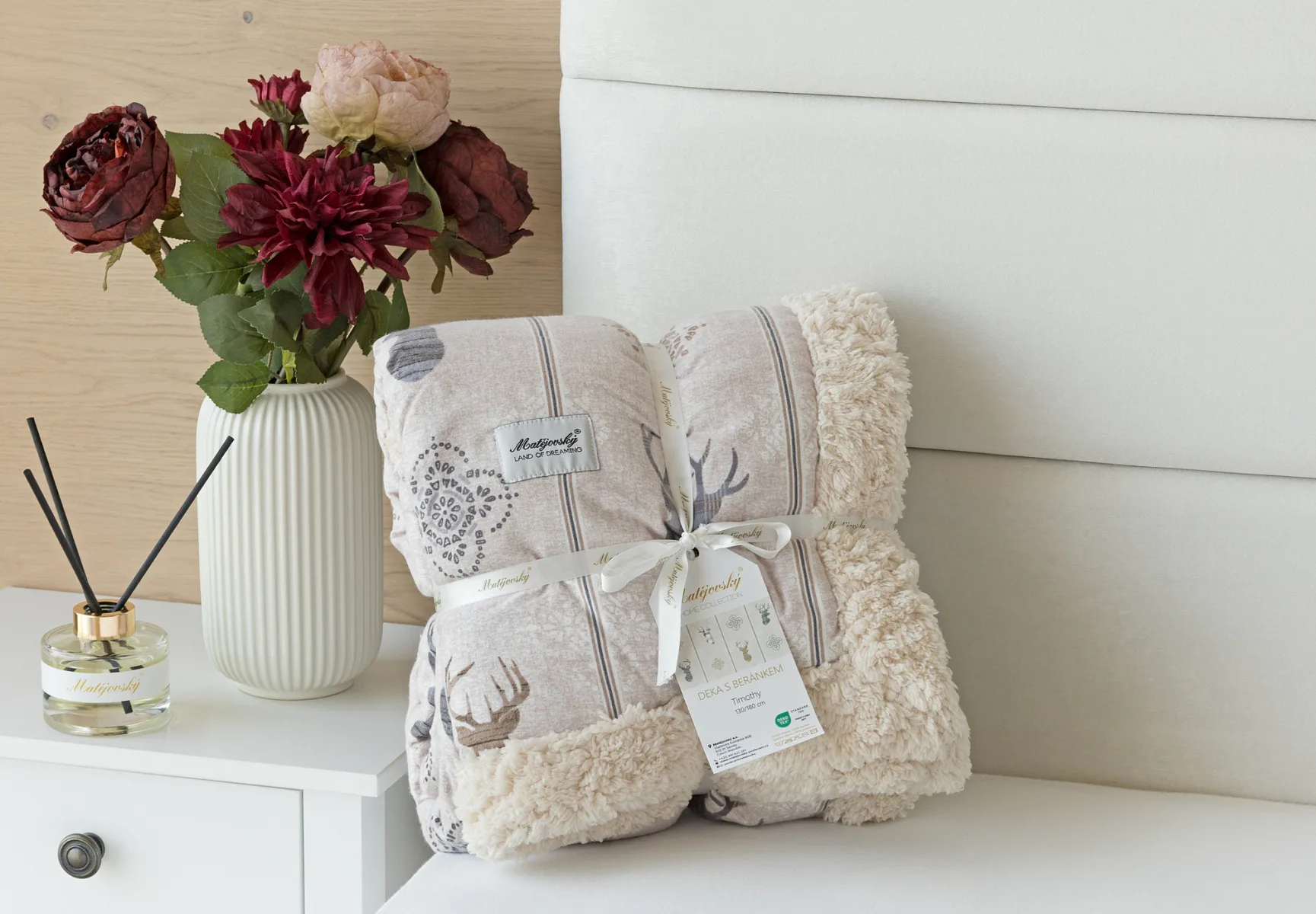 Díky pečlivě vybraným motivům, které lze kombinovat s ložním povlečením a dalšími bytovými doplňky, nesmí beránková deka Timothy chybět ve vaší domácí oáze klidu a pohody.