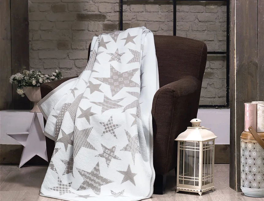 Luxusní bavlněná deka s hustým vlasem, hřejivá a hebká na omak. Nová receptura tkaní je zárukou lehkosti a skvělé prodyšnosti. Deka STAR CAFE bude jedinečným doplňkem vašeho domova a nepostradatelným společníkem pro chladné večery. Mladistvý motiv s hvězdičkami kombinu je jemný akcent kávově hnědé s přírodním bílým odstínem. Spodní strana deky je provedena inverzně.