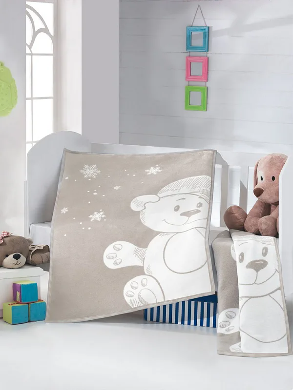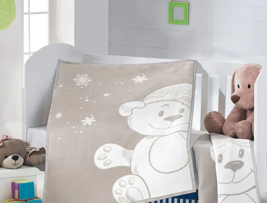 Dětská deka Teddy Beige s vysokým podílem bavlny a hustým vlasem, hřejivá a hebká na dotek, se stane skvělým společníkem v dětském pokojíčku nebo třeba v kočárku. Roztomilý veselý medvídek obklopený sněhovými vločkami vykouzlí úsměv na dětské tváři. Neutrální kombinace světle hnědé s krémově bílou je vhodná pro holčičku i chlapečka.