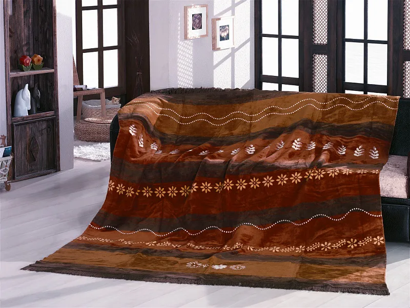 Deku můžete elegantně využít i jako ozdobný přehoz. Deka je olemována hnědou lemovkou (bez třásní).