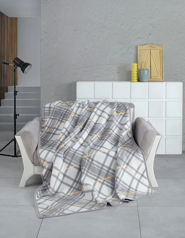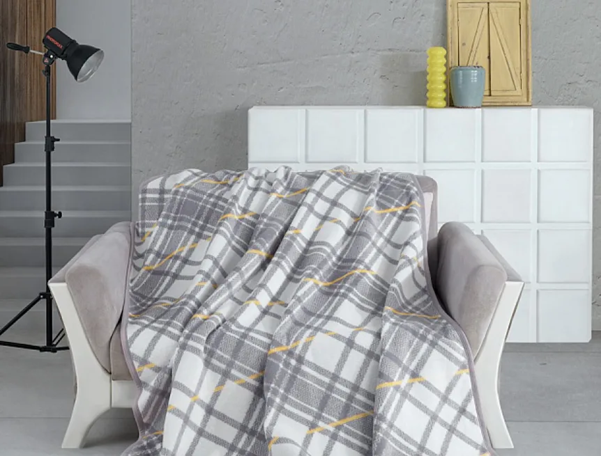 Design: atraktivní károvaný vzor v kombinaci barev bílá, šedá a vanilkově žlutá