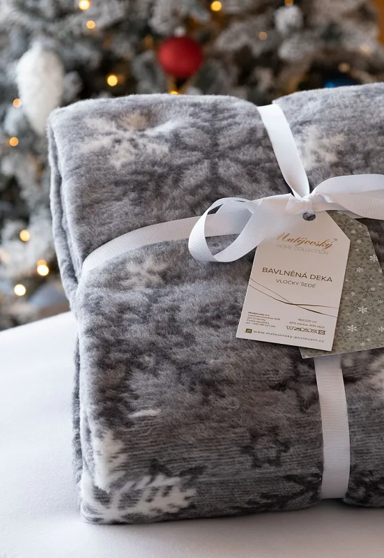 Luxusní bavlněná deka s hustým vlasem, hřejivá a hebká na omak. Nová receptura tkaní je zárukou lehkosti a skvělé prodyšnosti. Deka Vločky šedé se stane jedinečným doplňkem vašeho domova a nepostradatelným společníkem pro chladné večery. Deku můžete elegantně využít i jako ozdobný přehoz.