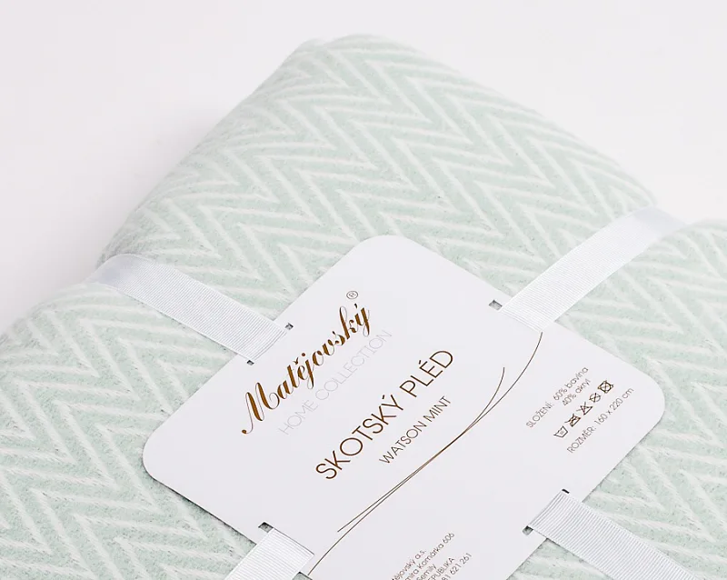 Stylové deky jsou nezbytnou součástí každého interiéru. Inspirujte se novou kolekcí hebkých plédů. Atraktivní severský "cikcakový" vzor a dokonale sladěné pastelové odstíny přírodní bílé a mátové v kombinaci s jemným povrchem z přírodního materiálu přímo svádí k zachumlání.