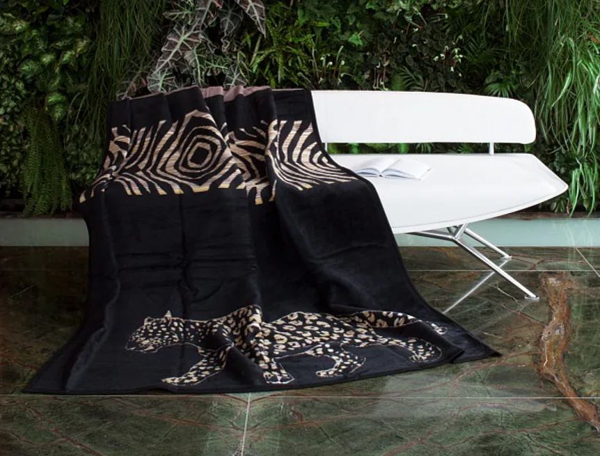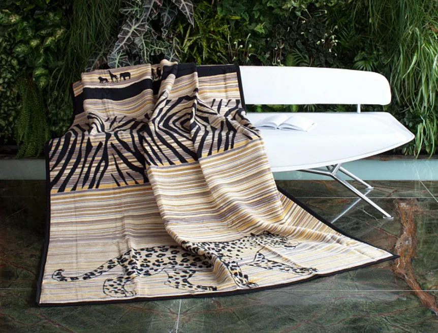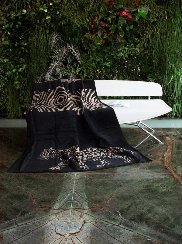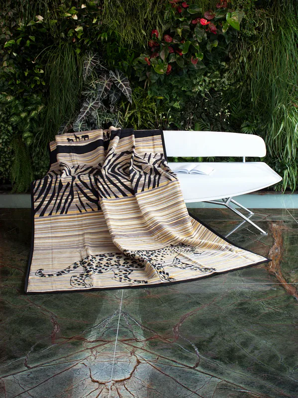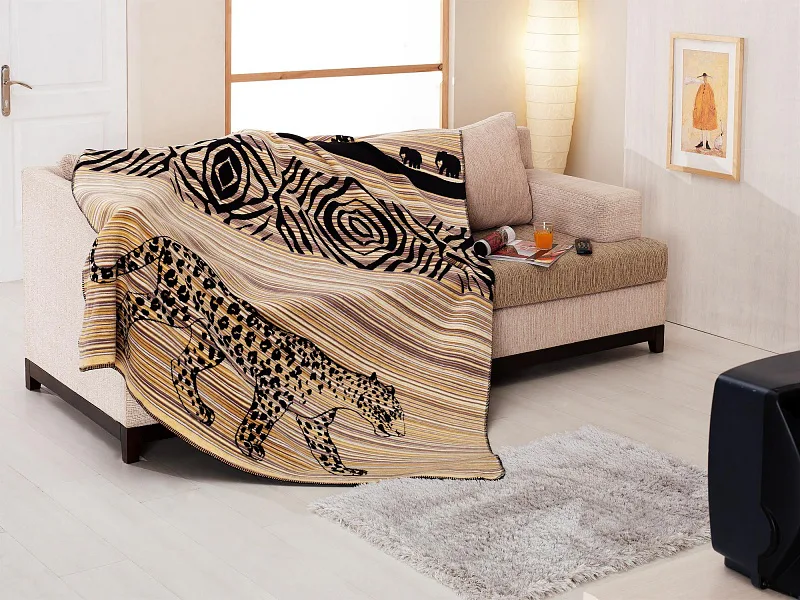 Luxusní deka ZAMBEZI s hustým vlasem, hřejivá a sametová na omak. Atraktivní dezén zajistí, že deka bude jedinečným doplňkem vašeho domova a nepostradatelným společníkem pro chladné večery. Černé siluety africké divočiny nádherně kontrastují se světlým podkladem v béžových a pískových tónech.