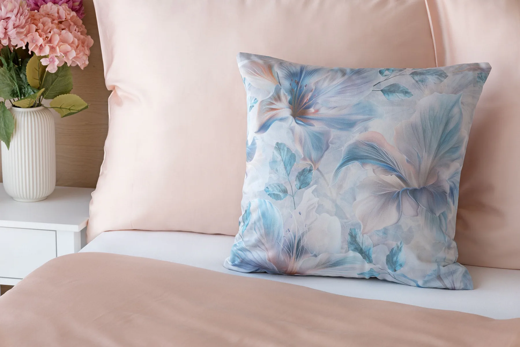 Luxusní bavlněný satén s vysokou gramáží 215 g/m2 je vhodný zejména pro dekorační účely. Nejmodernější digitální tisk zajišťuje krásné barvy a precizní detaily.