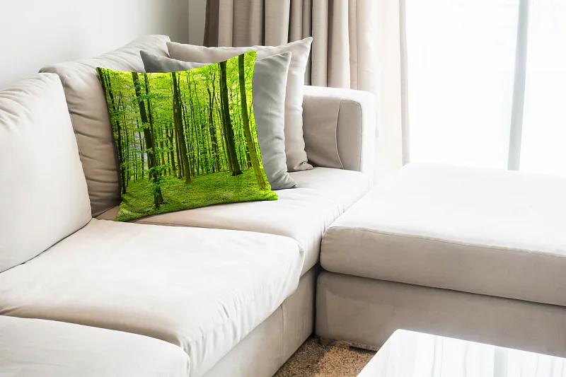 Exkluzivní kolekce designových dekoračních povlaků ze 100% bavlny v provedení luxusního saténu s hustou a pevnou strukturou přináší neodolatelný motiv SPRING FOREST. Věrné vyobrazení svěžího lesa v zářivých zelených tónech v kombinaci s hnědou je zajištěno precizním digitálním tiskem. Povlak o rozměru 50x50 cm je z obou stran stejný a je opatřen zipovým uzávěrem.