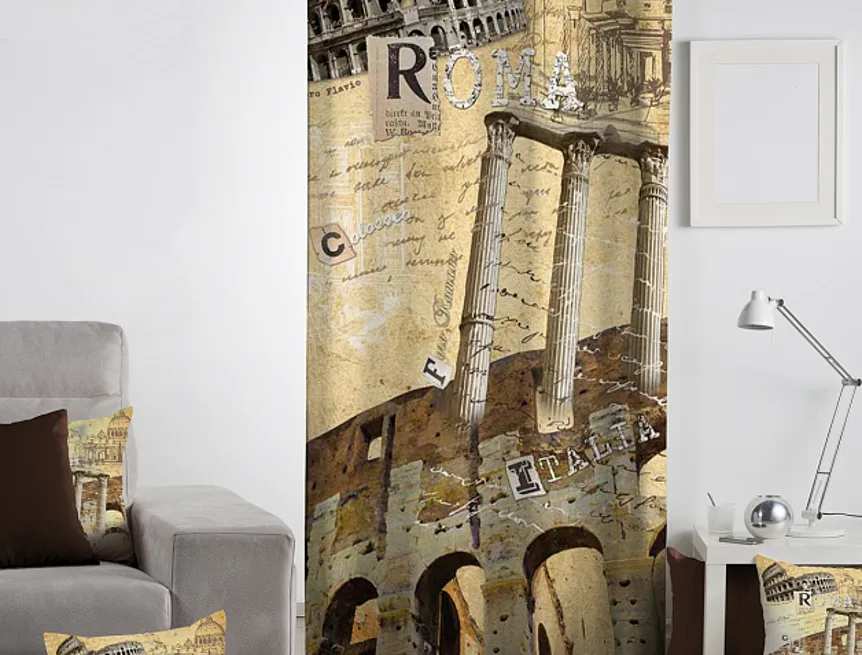 Exkluzivní kolekce dekoračních závěsů přináší mimořádný zážitek a věrné provedení detailu. To vše díky nejmodernější digitální technologii tisku. Přineste do svého domova cestovatelskou atmosféru krásných antických památek se závěsem ANTIK ITALIA. Okouzlující odstíny hnědé a okrové prozáří každý okamžik. Jistě oceníte i látku s velmi hustou a pevnou strukturou, vyrobenou ze 100% bavlny, opatřenou sametovým povrchem. Potisk je jednostranný.