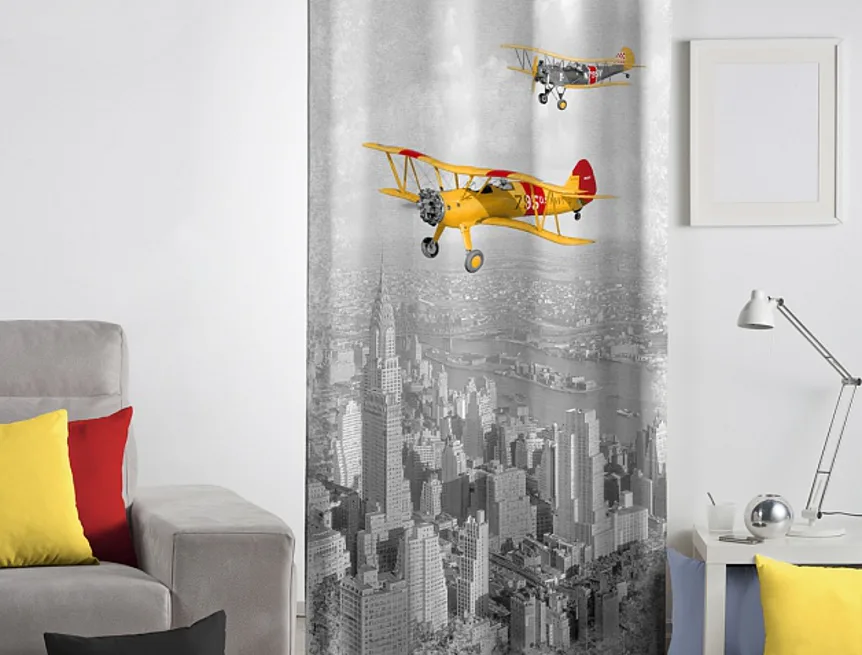 Exkluzivní kolekce dekoračních závěsů přináší mimořádný zážitek a věrné provedení detailu. To vše díky nejmodernější digitální technologii tisku. Nyní se můžete doma cítit jako v oblacích prostřednictvím trendové koláže leteckých motivů v podání závěsu AVION. Výrazné žluté a červené motivy dokonale vyniknou na šedém podkladu. Jistě oceníte i látku s velmi hustou a pevnou strukturou, vyrobenou ze 100% bavlny, kterou jsme opatřili tzv. sametovým povrchem. Potisk je jednostranný.
