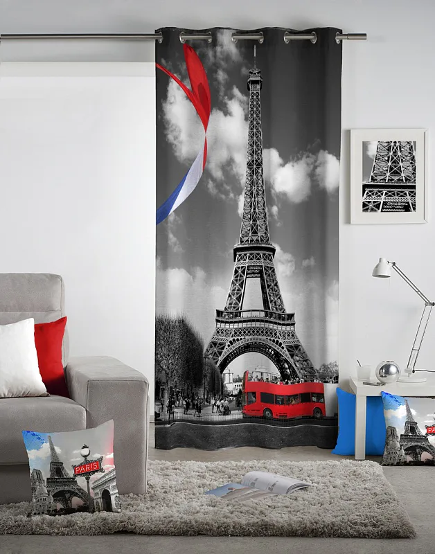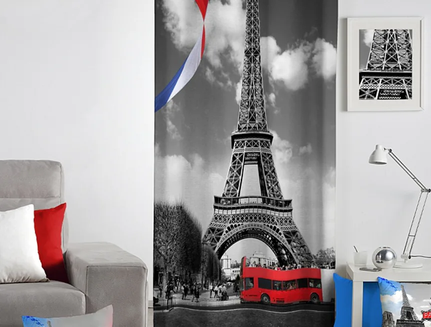 Exkluzivní kolekce dekoračních závěsů přináší mimořádný zážitek a věrné provedení fotografií. To vše díky nejmodernější digitální technologii tisku. Trendový motiv romantické EIFFEL věže dokonale splyne s Vaším pokojem. Výrazné červené prvky dokonale vyniknou na šedém podkladu. Jistě oceníte i látku s velmi hustou a pevnou strukturou, vyrobenou ze 100% bavlny, kterou jsme opatřili tzv. sametovým povrchem. Potisk je jednostranný.