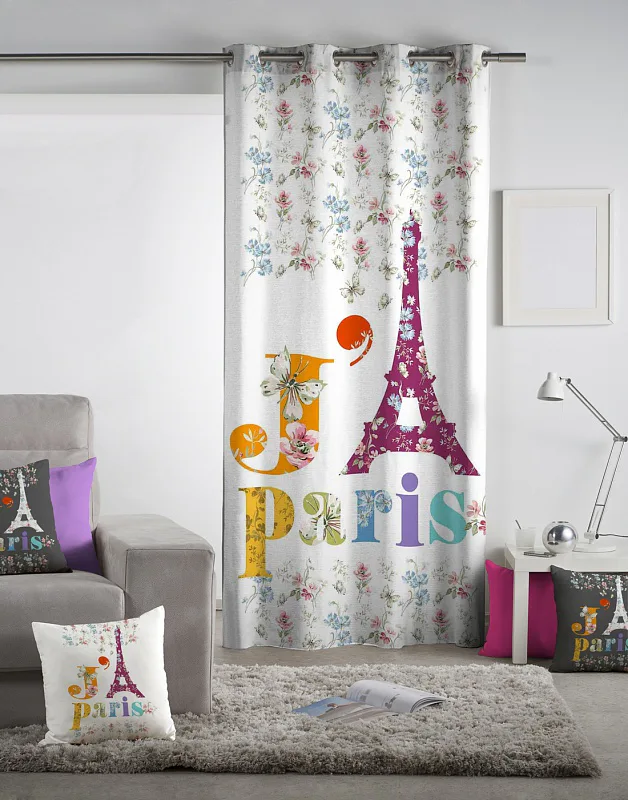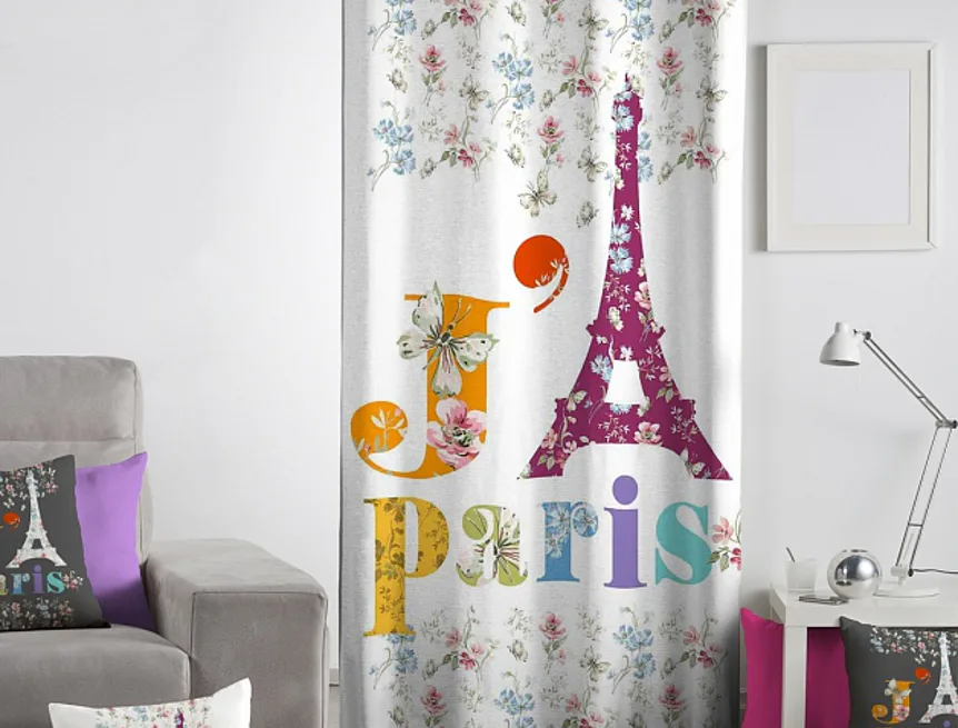 Exkluzivní kolekce dekoračních závěsů přináší mimořádný zážitek a věrné provedení detailu. To vše díky nejmodernější digitální technologii tisku. Přineste do svého domova neopakovatelnou atmosféru romantické Paříže se závěsem PARIS JOLI. Okouzlující pastelové odstíny oranžové, žluté, modré a fialové na světlém podkladu prozáří každý okamžik. Jistě oceníte i látku s velmi hustou a pevnou strukturou, vyrobenou ze 100% bavlny, opatřenou sametovým povrchem. Potisk je jednostranný.