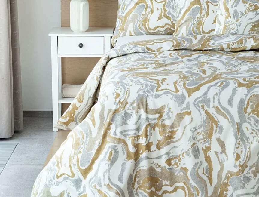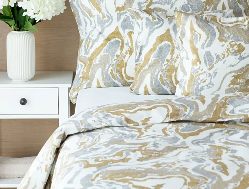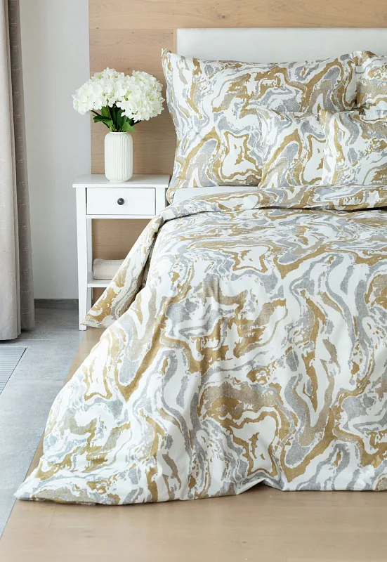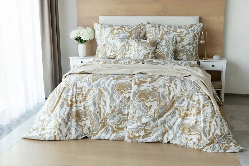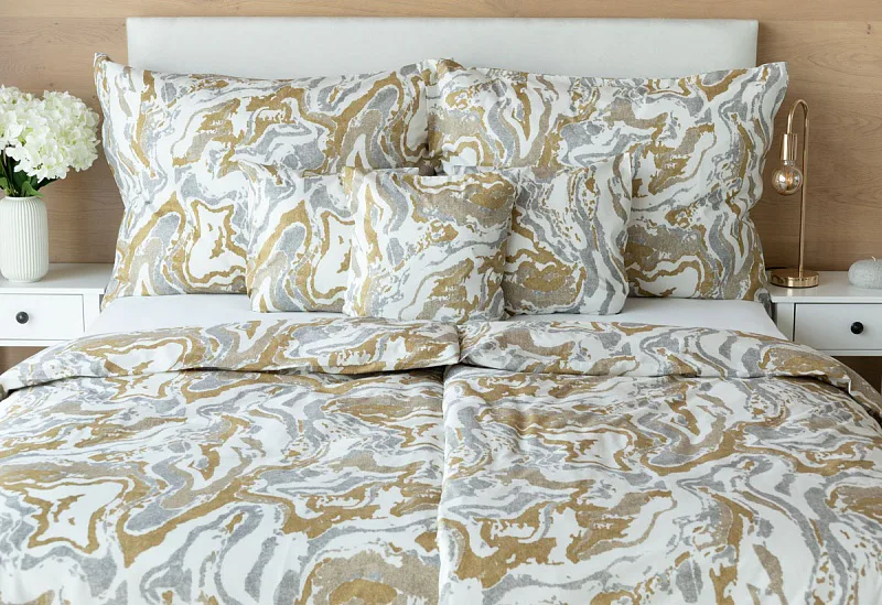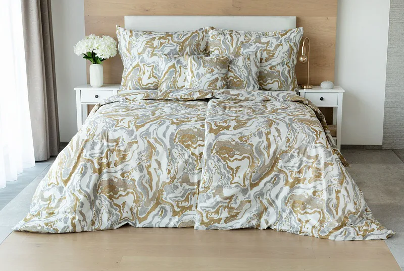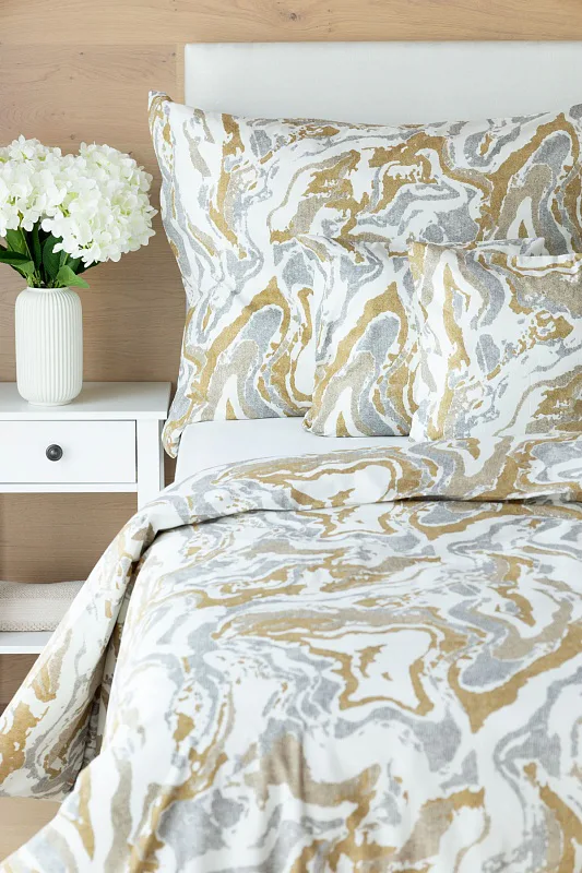 With Fiona bedding your bedroom will be fresh and completely original. The timeless marble pattern in shades of grey, ochre and creamy white will become a decoration of any modern interior.