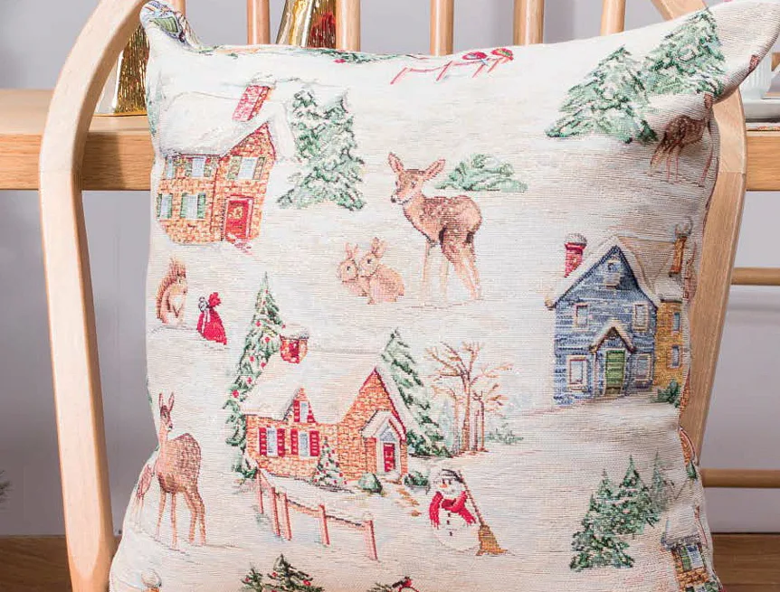 Vánoční kolekce dekoračních tkaných povlaků skvěle doplní každé oblíbené domácí zákoutí. Povlak Snowy Mountains je originální a praktický doplněk, který potěší všechny milovníky veselých svátečních dekorací.